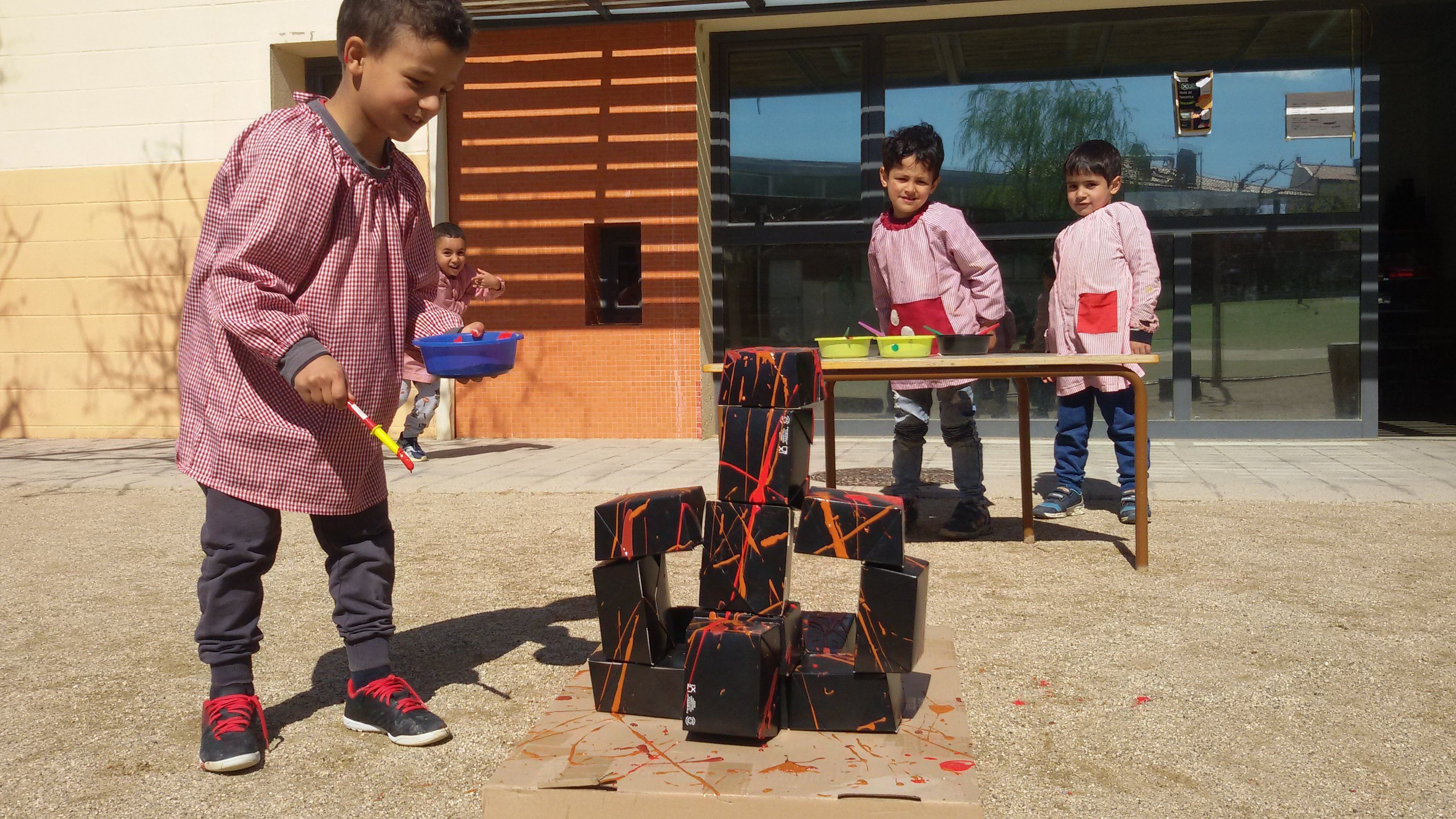 Els hem donat un material i els hem dit que a partir del que han vist i escoltat creessin escultures col·lectives en petits grup de 5 o 6 nens. Hem esquitxat les nostres escultores amb els colors del ferro i la fusta.