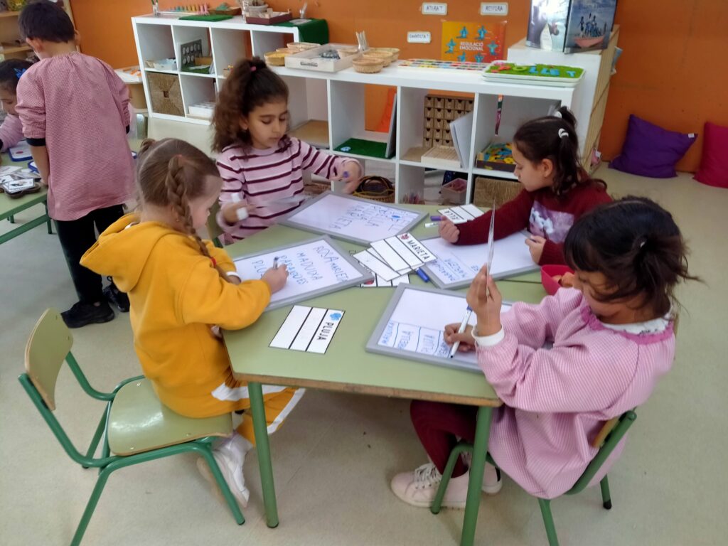 P5 taules de lectoescriptura Escola19/04/22 Fotos i vídeo A p5 estem molt interessats en escriure, per això periòdicament preparem taules de lectoescriptura.