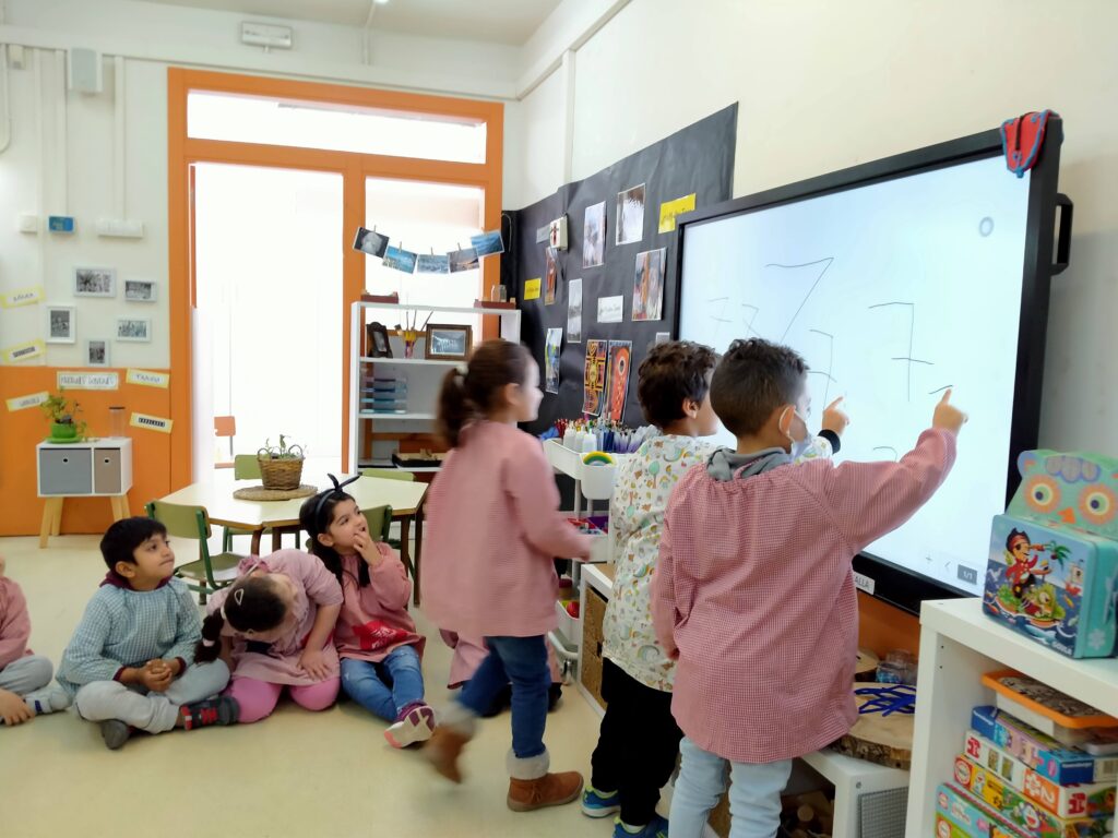 Avui a P5 en una estoneta abans d’anar al pati hem aprofitat la pantalla per entrenar el traç del nombres…