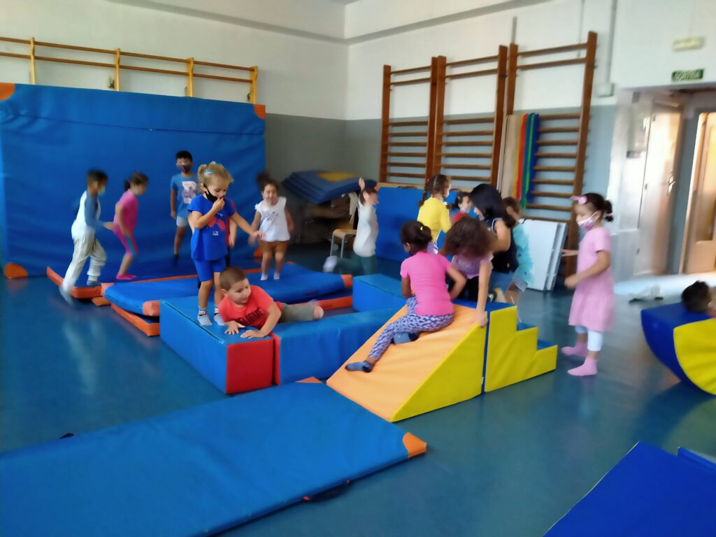 Els nens i nenes de P5 hem anat a visitar el gimnàs. L’any passat no en vam poder fer ús. Aquest any hi anirem dos dies a la setmana. Un dia farem educació emocional i l’altre dia hi anirem amb la Marta a fer psicomotricitat.