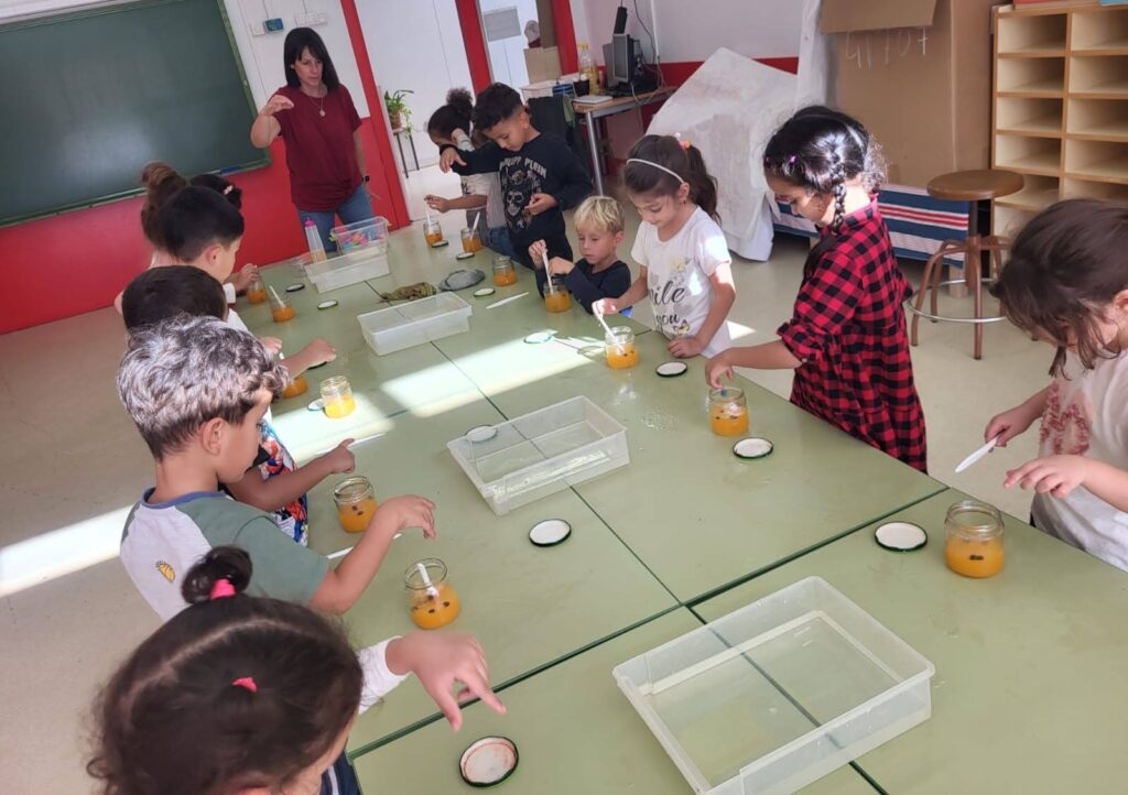 Avui hem experimentat mescles amb elements diversos. Què passa si mesclo aigua i sal? Què passa si mesclo aigua i oli? I si ara afegim purpurina? I si afegim estrelletes platejades? I grans de cafè? Aquests elements suren o s’enfonsen? Busquem un element que s’enfonsi… i si hi posem una bala?