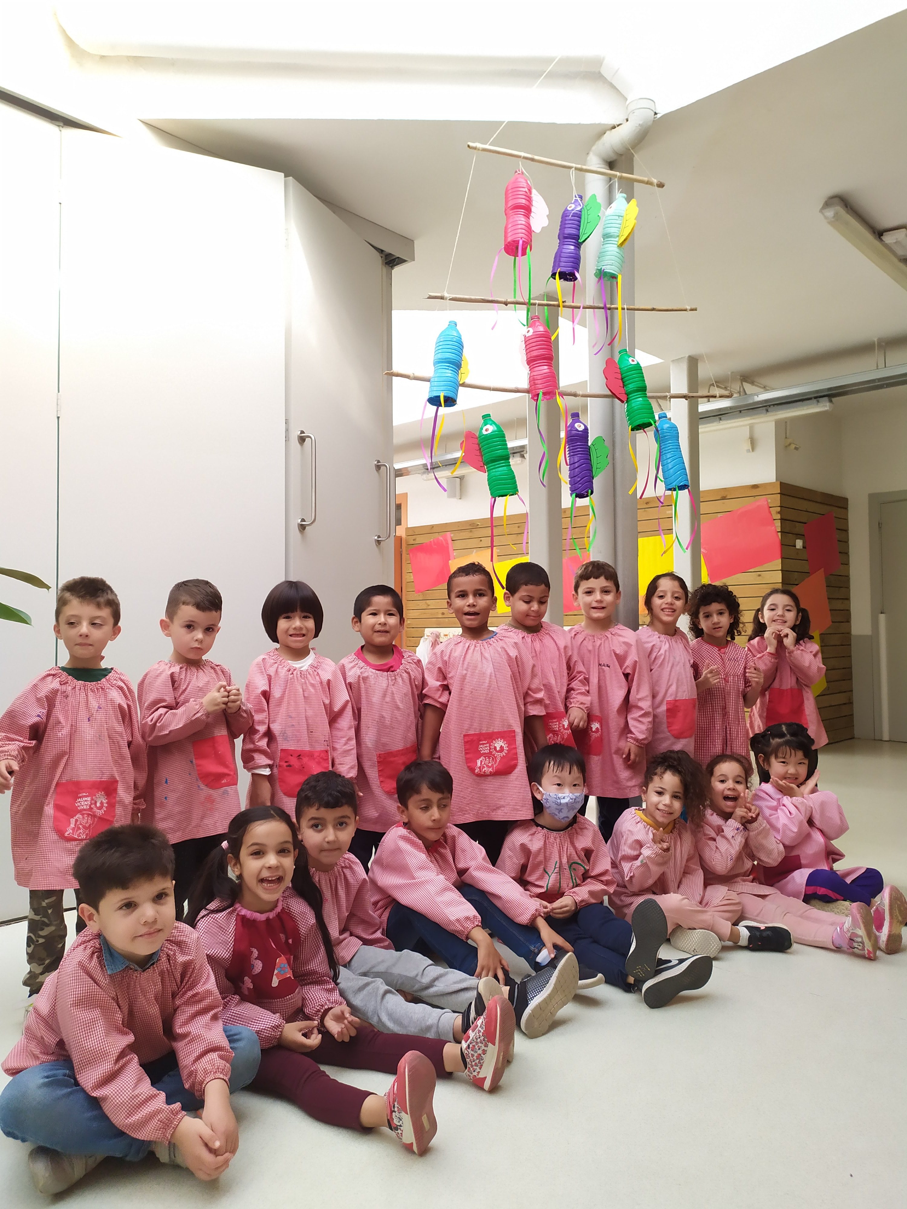 Amb diverses sessions de plàstica hem fet un mar imaginari amb material reciclat: ampolles i canyes!!