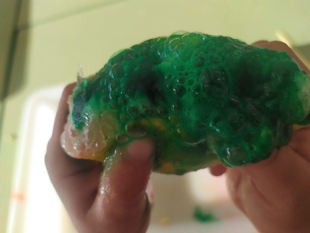 - Volcans de llimona, bicarbonat i colorants: el suc de la llimona conté àcid cítric que quan es barreja amb bicarbonat de sodi reacciona químicament per formar diòxid de carboni i citrat de sodi, que provoca una efervescència i simula un petit volcà.