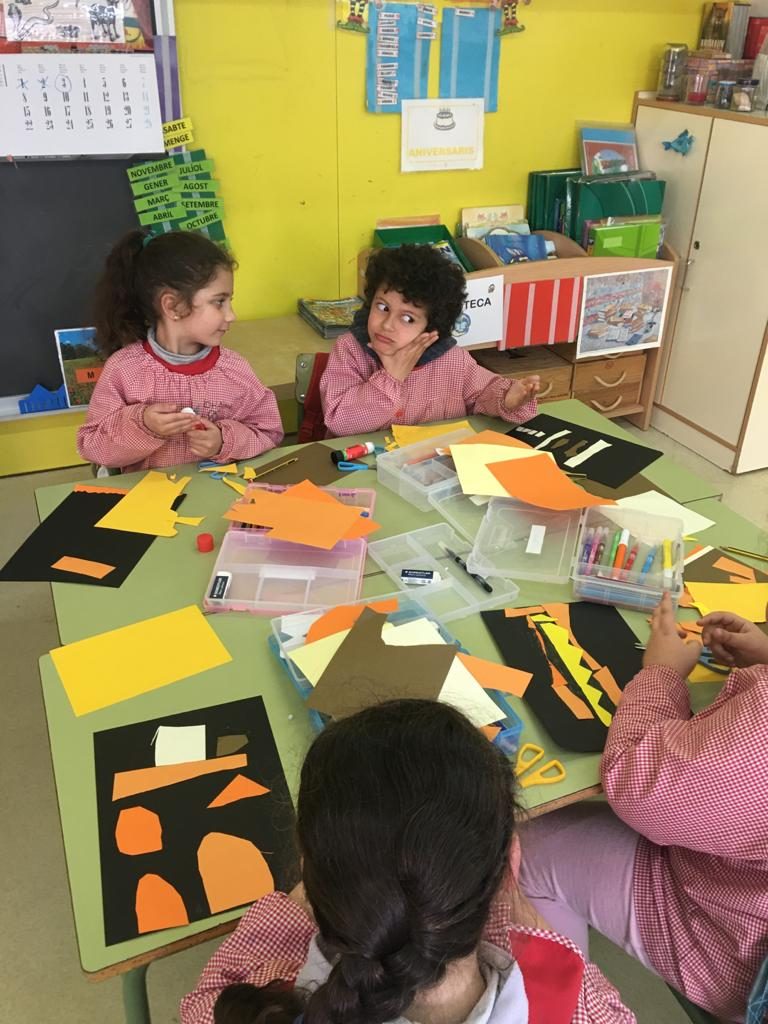 Com que també som uns grans artistes, fem obres amb senefes africanes, relacionades amb els seus quadres. D’aquesta manera, desenvolupem la nostra creativitat.