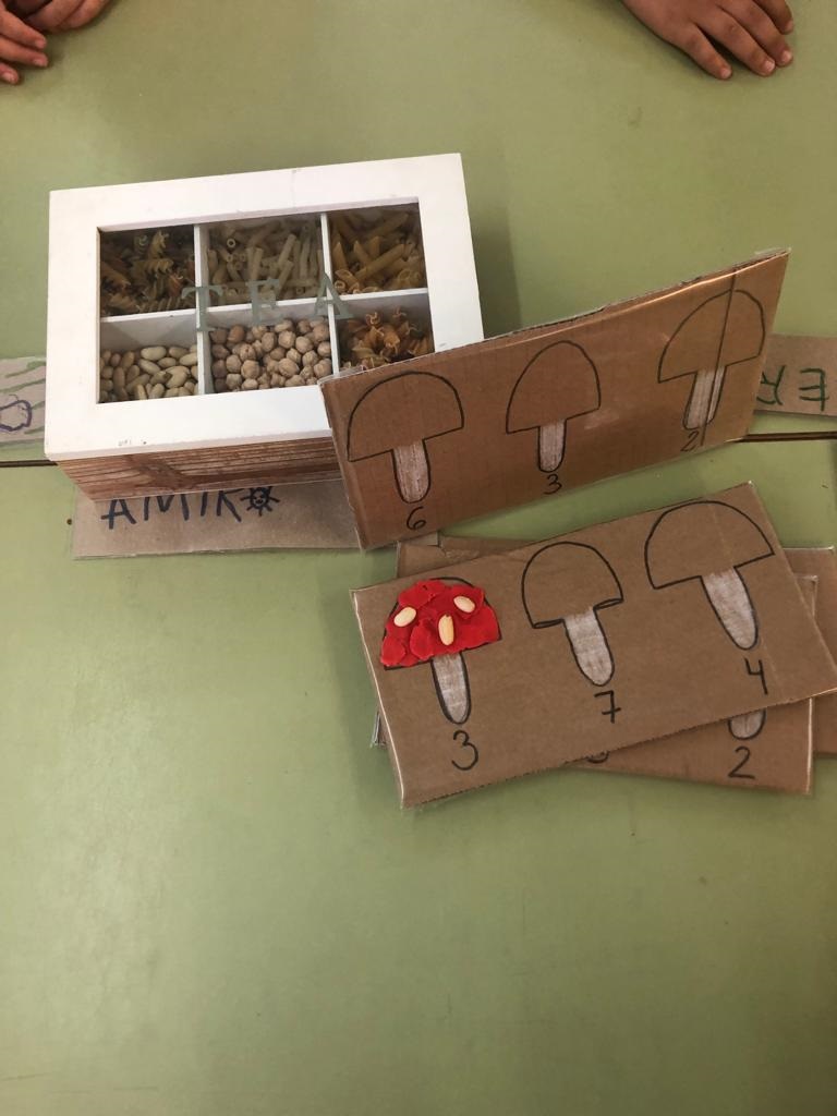 Benvinguda tardor! I a  les estacions de treball d’aquesta època de l’any! Hem confeccionat paraules, comptat amb l’ajuda d’uns bolets, amb els martells hem enganxat fulles de tardor i hem resseguit els nervis de les fulles que vam recollir  l’any anterior.