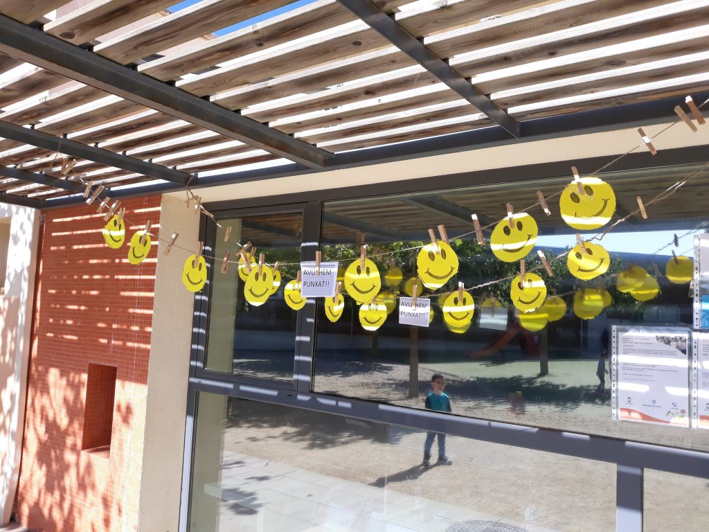 Avui hem utilitzat els punxons, una eina escolar que encara no coneixíem. A més hem presentat tres estats d’ànims: content, trist i enfadat representats en tres “emojis”. hem escollit el “emoji” content i hem parlat de les coses que ens fan estar contents. Després amb la pelfa i el punxo hem resseguit la cara per poder emportar-nos-la a casa.