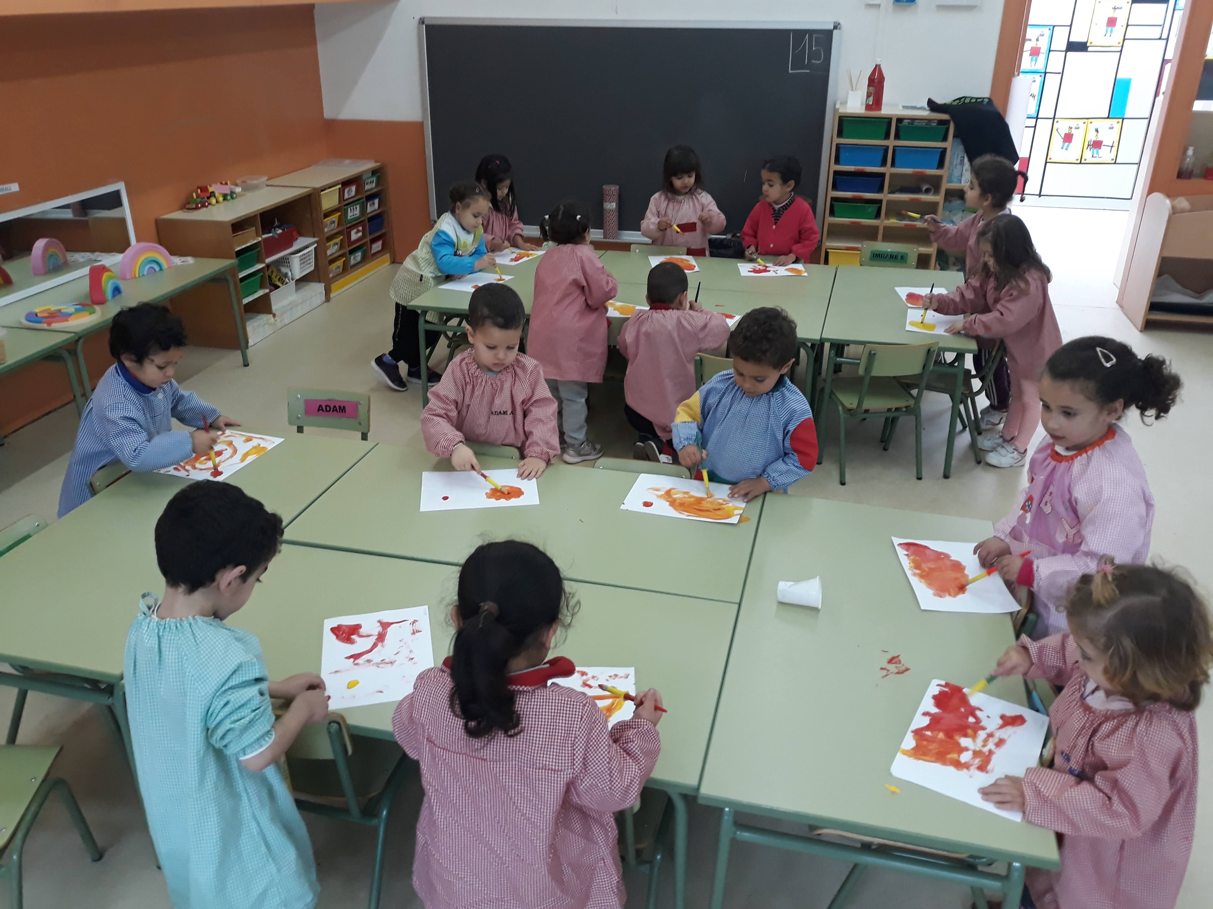 Infantil barreja de colors, colors, experimentació amb colors, Infantil, manipulació de colors, P3, pintant, taronja 0
