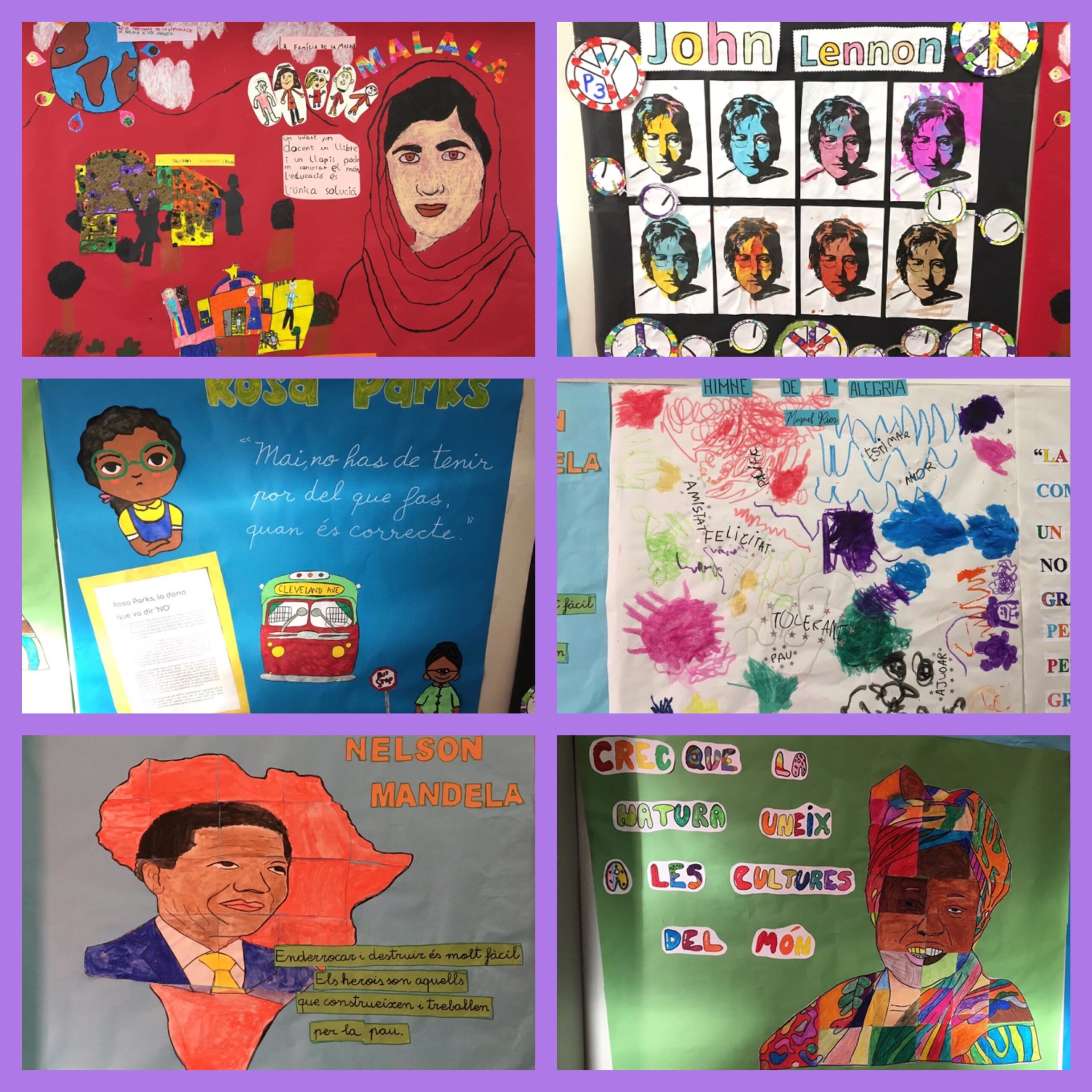El 30 de gener és el Dia Escolar de la No-violència i la Pau, un dia per sensibilitzar a tota la comunitat educativa sobre la importància que tenen els valors com la pau i el respecte cap als altres. Per aquest motiu, i com activitat d’escola, aquest any cada grup o nivell ha treballat una persona que hagi lluitat per la pau, a gran o petita escala. Aquí teniu el resultat, un mural amb la seva silueta i una frase o símbol que representa la seva tasca i el seu llegat per la pau.