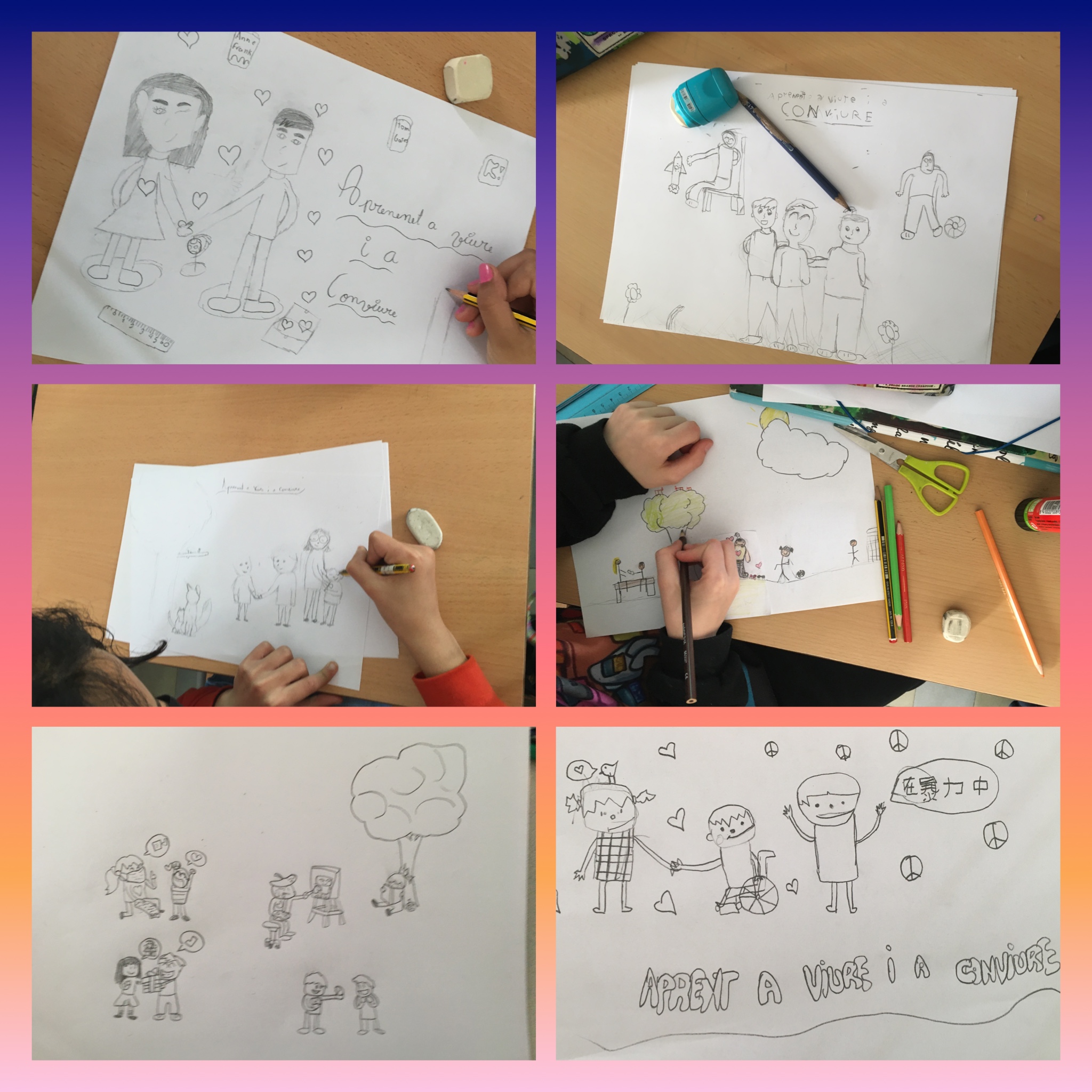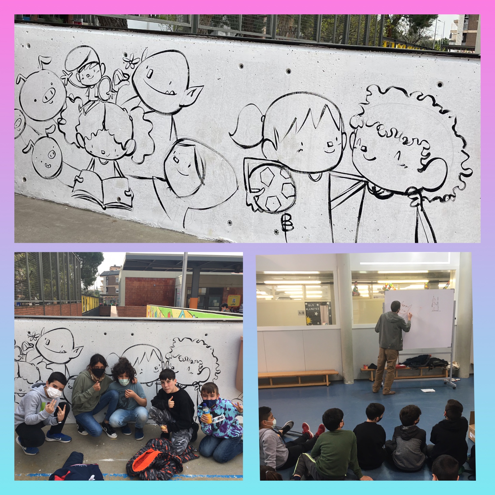 30/03/22Analitzant aquesta frase, “Aprenent a viure i a conviure”, l’alumnat de 5è s’ha imaginat com podria ser el mural de la paret del pati de l’escola. Un cop recollides les idees, l’il·lustrador Joan Turu ha elaborat una proposta d’esbós amb el seu estil de dibuix i ha encaixat el mural a la paret. Ara només ens falta pintar. Ja us informarem dels resultats.