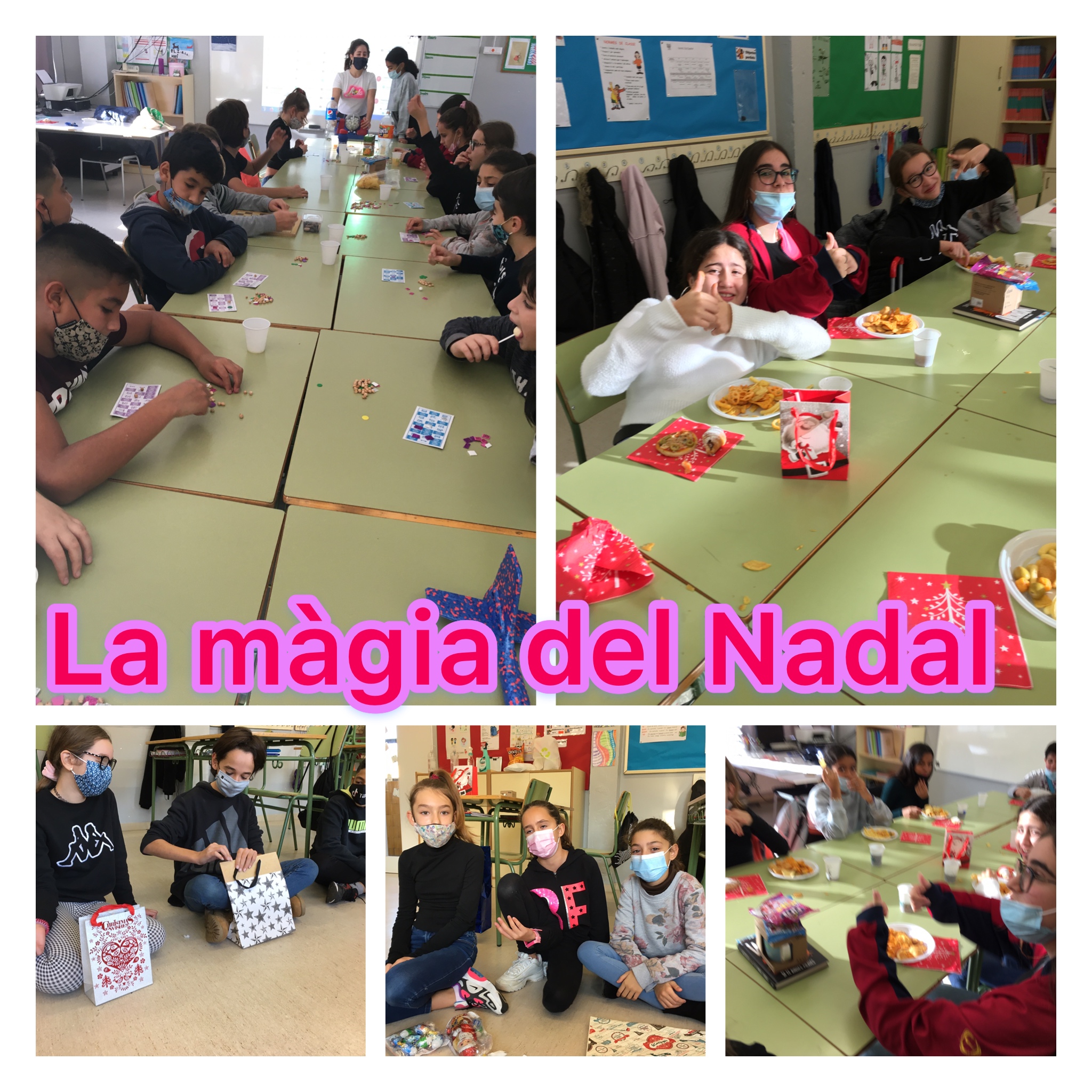 Els nens i nenes de 6è avui hem pogut gaudir d’aquest últim dia fent el tradicional esmorzar col·lectiu de Nadal, ballant, jugant al quinto i obrint regals d’amics i amigues invisibles!!!