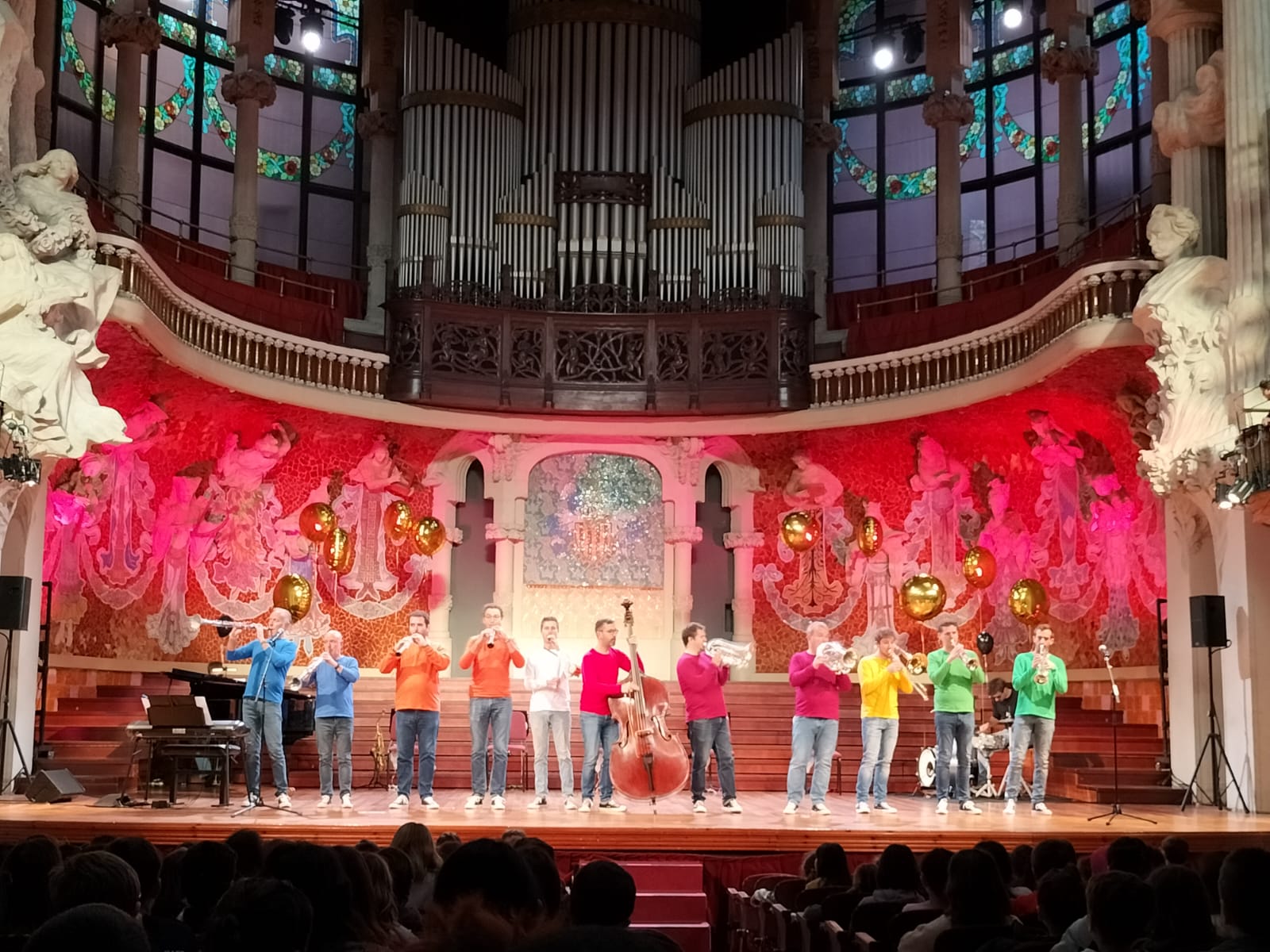 A segon estem treballant la música catalana, la cobla, la sardana… i què millor que poder veure una en directe! Vam anar al Palau de la música on van tocar els instruments de la cobla (i algun intrús…) fent un espectacle la mar de divertit.