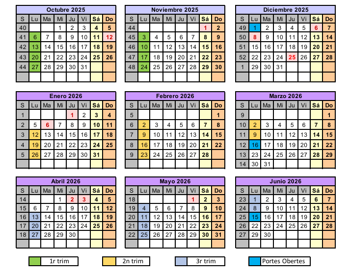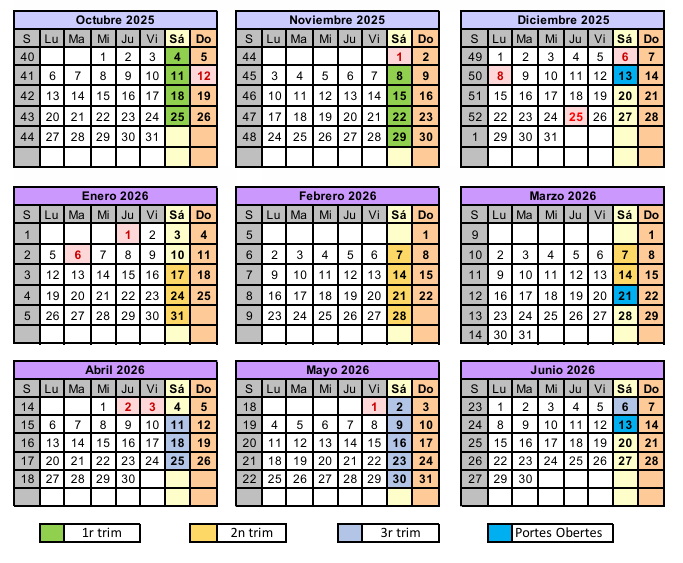 CALENDARI DIES PORTES OBERTES.