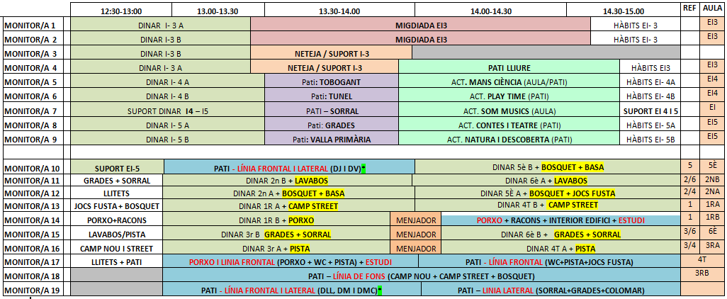 Nosaltres som les encarregades d’estar al màxim durant el migdia i procurant que tot surti bé, i així aprenem mentre mengem, estem al pati o fem alguna extraescolar!
