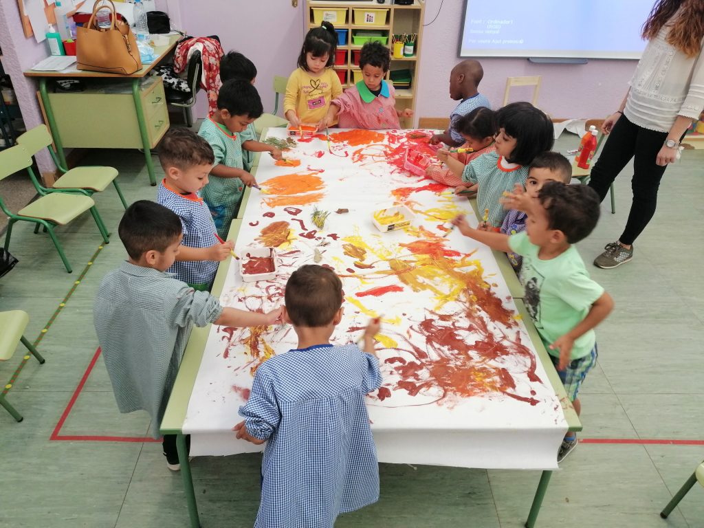 Mural tardor admin12/11/19 Amb els colors de la tardor: groc, vermell, taronja i marró…la classe dels ànecs i les anegues hem fet un súper mural amb pintura!!! Ens ha quedat xulíssim !!!