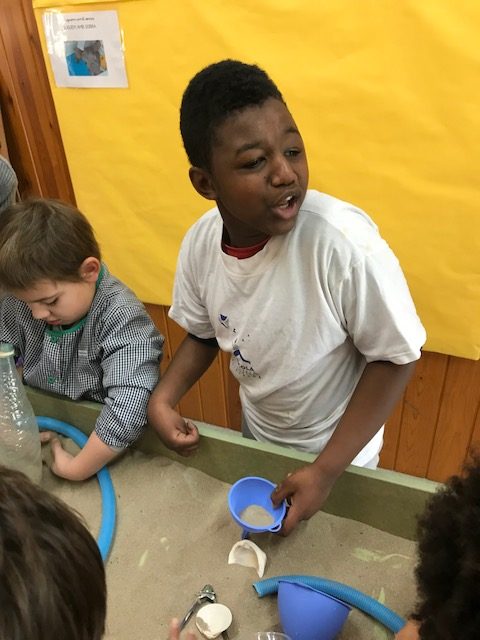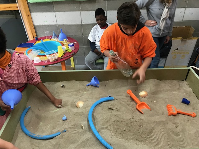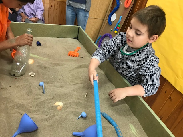 Treballem els dimarts al matí per ambients, entre ells tenim el sorral i l’ambient d’aigua. Les cares dels nens/nenes ho deien tot i han après moltes coses. També ha servit per deixar volar la seva imaginació amb diversos materials reciclats. Si teniu pots a casa o materials que no volgueu i podem fer servir no dubteu a portar-los a l’escola. Moltes gràcies!