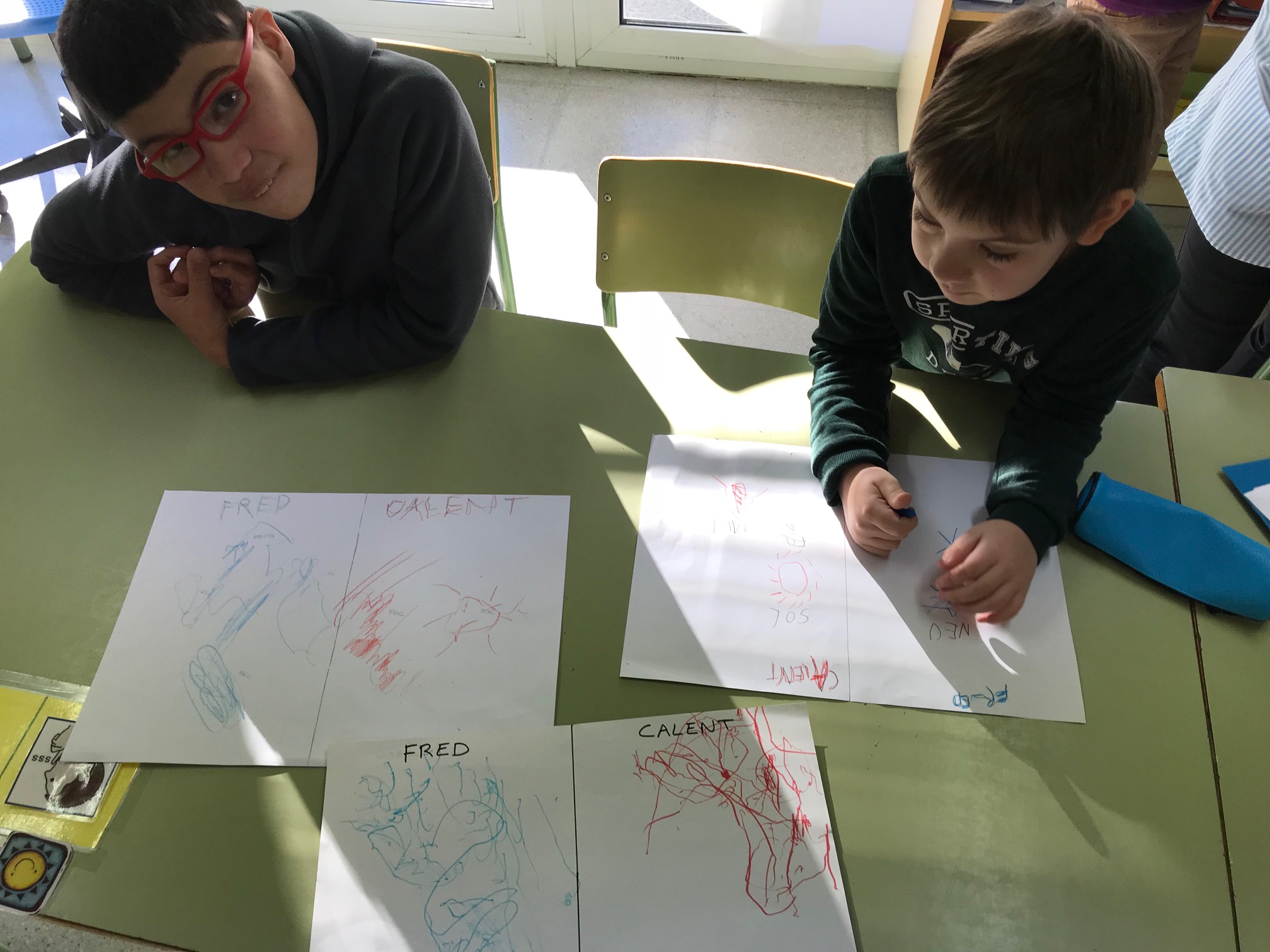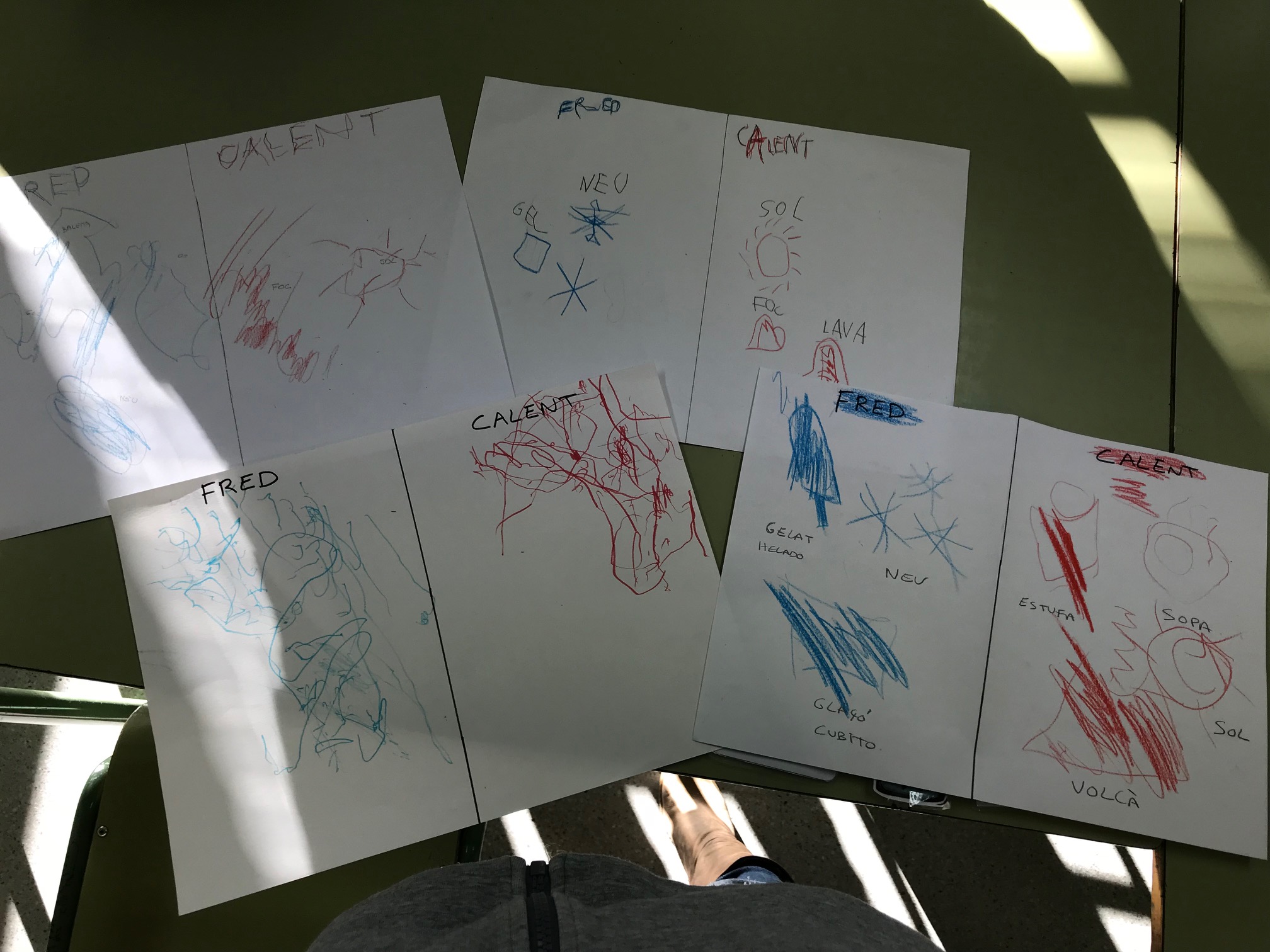 També hem treballat diversos elements que es poden relacionar amb la temperatura, per exemple, han dit que la neu és freda, el sol calent i el menjar tebi.