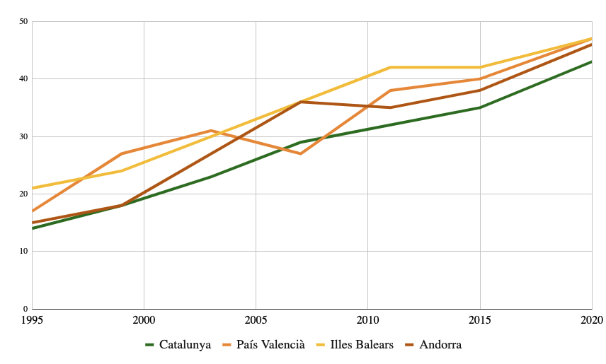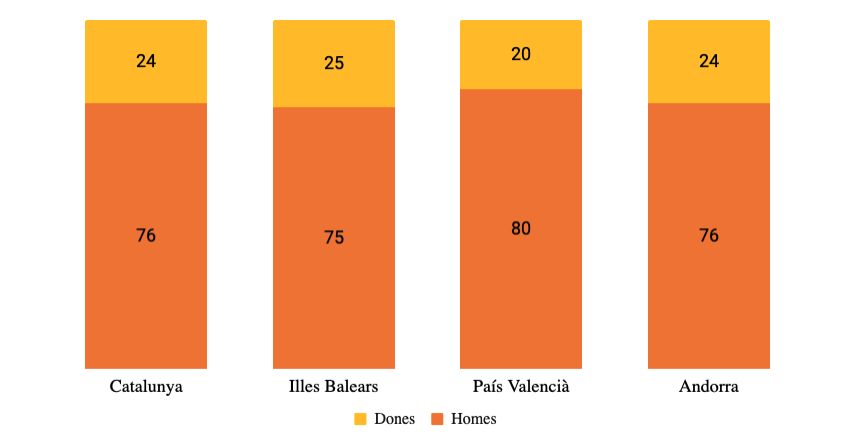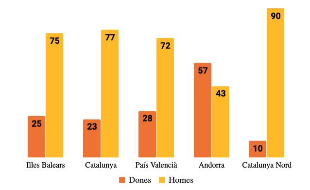 Percentatge de batllesses. Institut de la Dona i per a la Igualtat d’Oportunitat. Elaboració pròpia per a Catalunya Nord i Andorra.