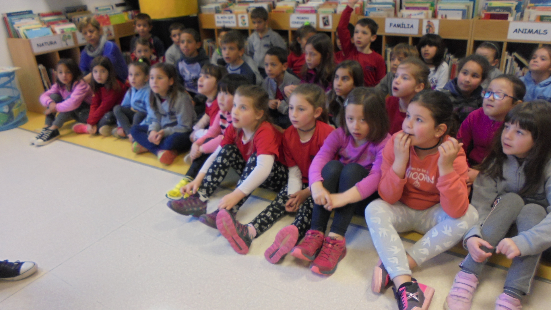 La Queralt i la Núria ens van llegir poesies, ens van preparar un joc de fer rodolins, vam endevinar títols de poesies i ens van deixar llibres que ens aniran molt bé per preparar les poesies dels Jocs Florals.