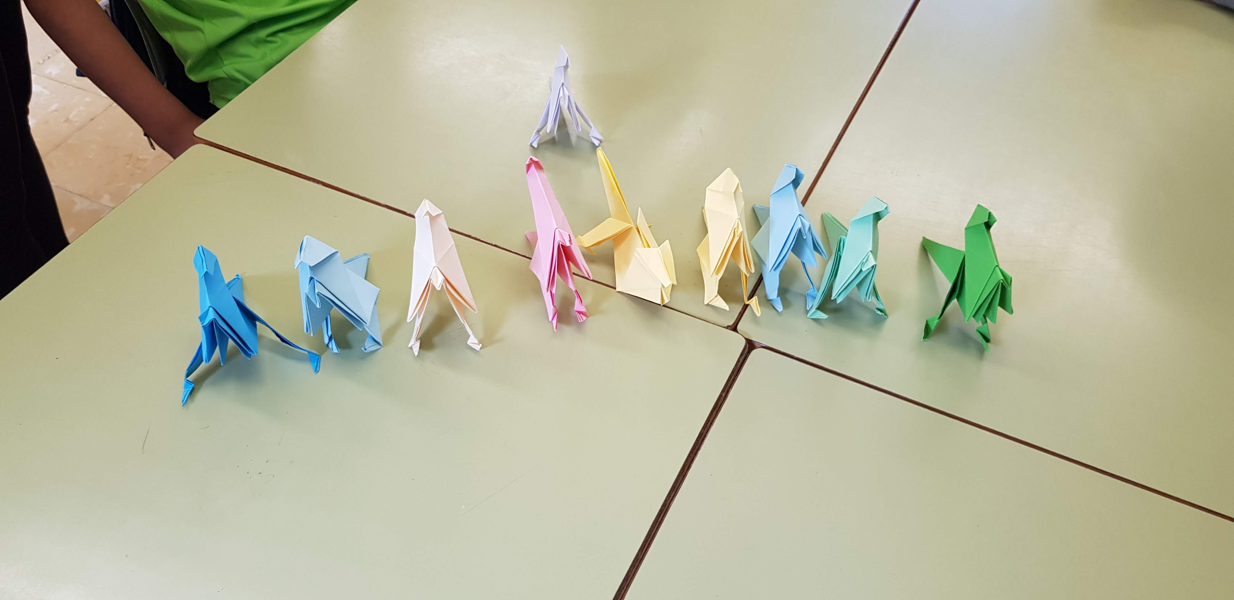 El dimarts 17 de juny venen a l’escola, el Blai i la Janet, germans de la Gina i ens ajuden a fer un dinosaure amb papiroflèxia o origami que és l’art japonès del plegament del paper. És originari del Japó. Quan el vam acabar de fer cadascú el va decorar a la seva manera. El dinosaure que vam fer era un velociraptor. Va ser una visita especial ja que eren exalumnes. Moltes gràcies per venir!!!