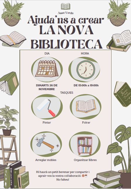 Apunta’t, vine a passar una bona estona i, entre tots, farem de la nostra biblioteca un lloc ple de vida i il·lusió!