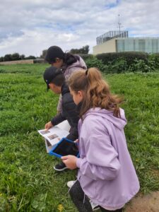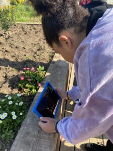 Aquesta setmana, les classes de 5è ens hem dirigit al jardí de les papallones de La Muntanyeta per a continuar amb el treball del projecte “Apadrinem un espai del parc“, el qual fem en col·laboració amb l’Àrea Metropolitana de Barcelona i l’Ajuntament de Sant Boi. La Pilar ens ha ensenyat a identificar plantes, a través de l’APP Plantnet que hem fet funcionar amb unes tauletes, i insectes, a partir d’una guia en paper. Amb aquestes informacions, hem hagut de completar unes fitxes de camp.
