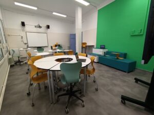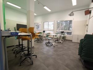 El tipus de mobiliari que forma l’Smart Classroom és flexible: es pot moure de lloc, es pot regular en alçada i l’alumnat té la llibertat d’adaptar el seu espai d’aprenentatge el més
