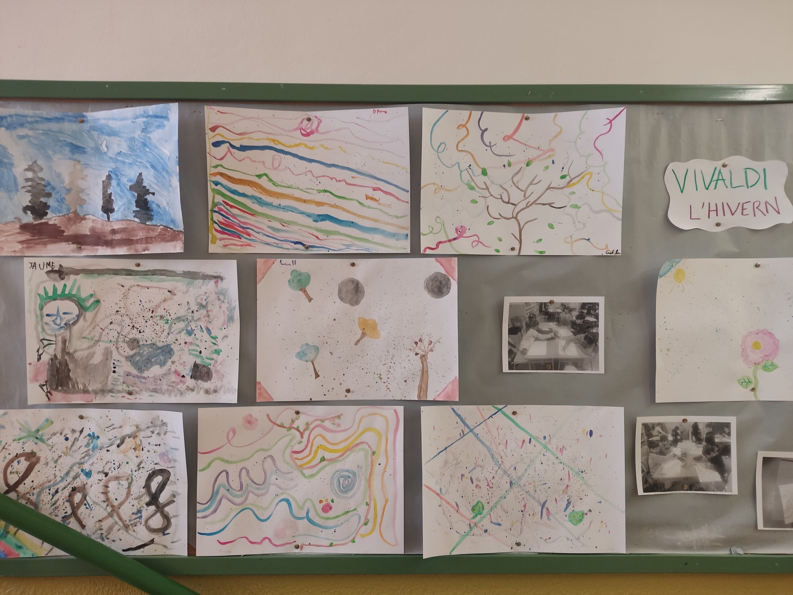 L’alumnat de l’escola no només treballa a música lectura de notes, expressió corporal i flauta. De vegades també fem servir altres disciplines artístiques com la pintura. Aquest cop mentre escoltem L’Hivern de Vivaldi pintem en diferents formats i en coneixem una mica la seva vida.