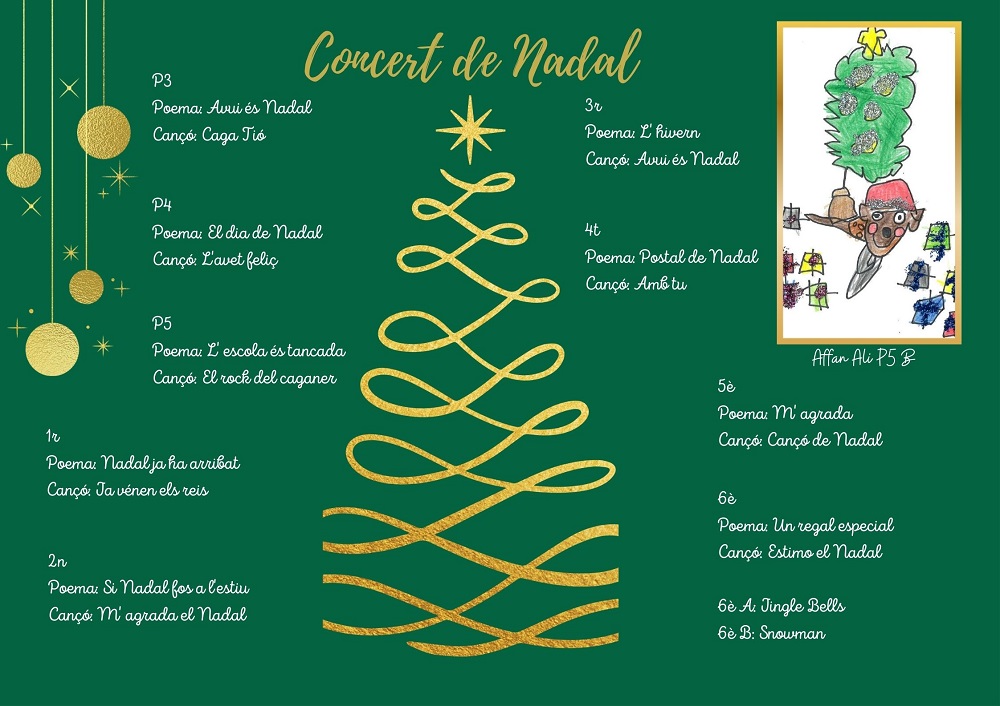 Concert de Nadal Escola Antoni Gaudí 2021/2022. Feu un comentari / Per admin / 21 de desembre de 2021 / Anglès Cicle inicial Cicle mitjà Cicle superior General Infantil Música Portada Concert de Nadal Escola Antoni Gaudí 2021/2022. Com cada any des de l’escola Antoni Gaudí, hem preparat amb molt d’afecte, unes cançons i uns poemes per a celebrar les festes de Nadal. Desitgem que us agradin. P3 P4A P4B P5A P5B 1rA 1rB 2nA 2nB 3rA 3rB 4tA 4tB 5èA 5èB 6èA 6èB