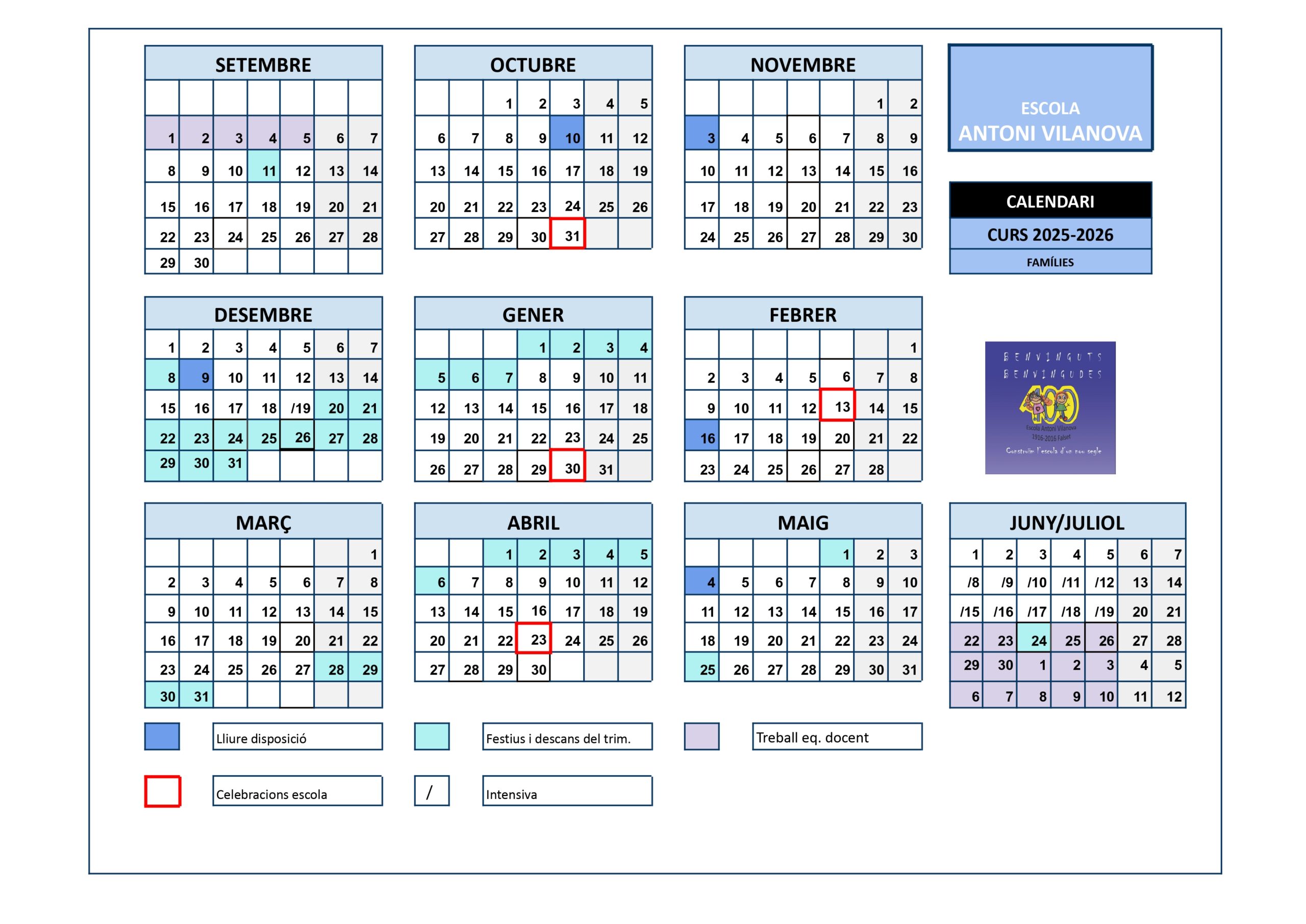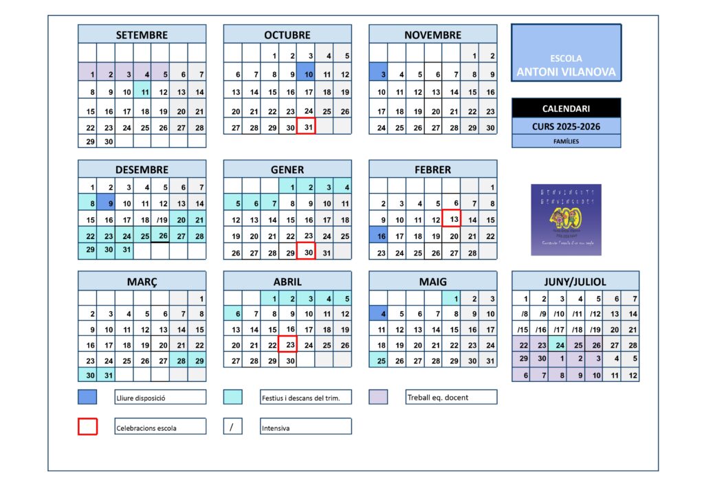 19 de juny de 2026: acaben les classes a l’educació infantil (3-6 anys), a l’educació primària.