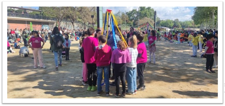 L’últim trimestre de curs és quan es realitza aquesta trobada d’escoles on tot l’alumnat participa en una ballada a l’aire lliure, oberta a tothom.