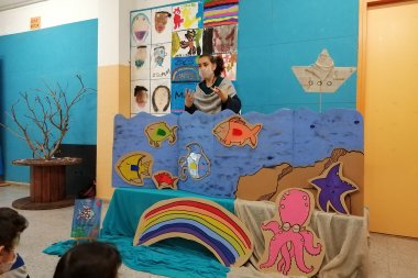 La Crisspeta ha vingut ha explicar-nos un conte , El peix Irisat. Aquest conte fa referència a la importància del valor de compartir i l’egoisme. La llengua d’origen d’aquest conte és l’alemany i el va escriure i il·lustrar Marcus Pfister. Ens ha agradat molt l’adaptació que ens ha fet la Crisspeta.