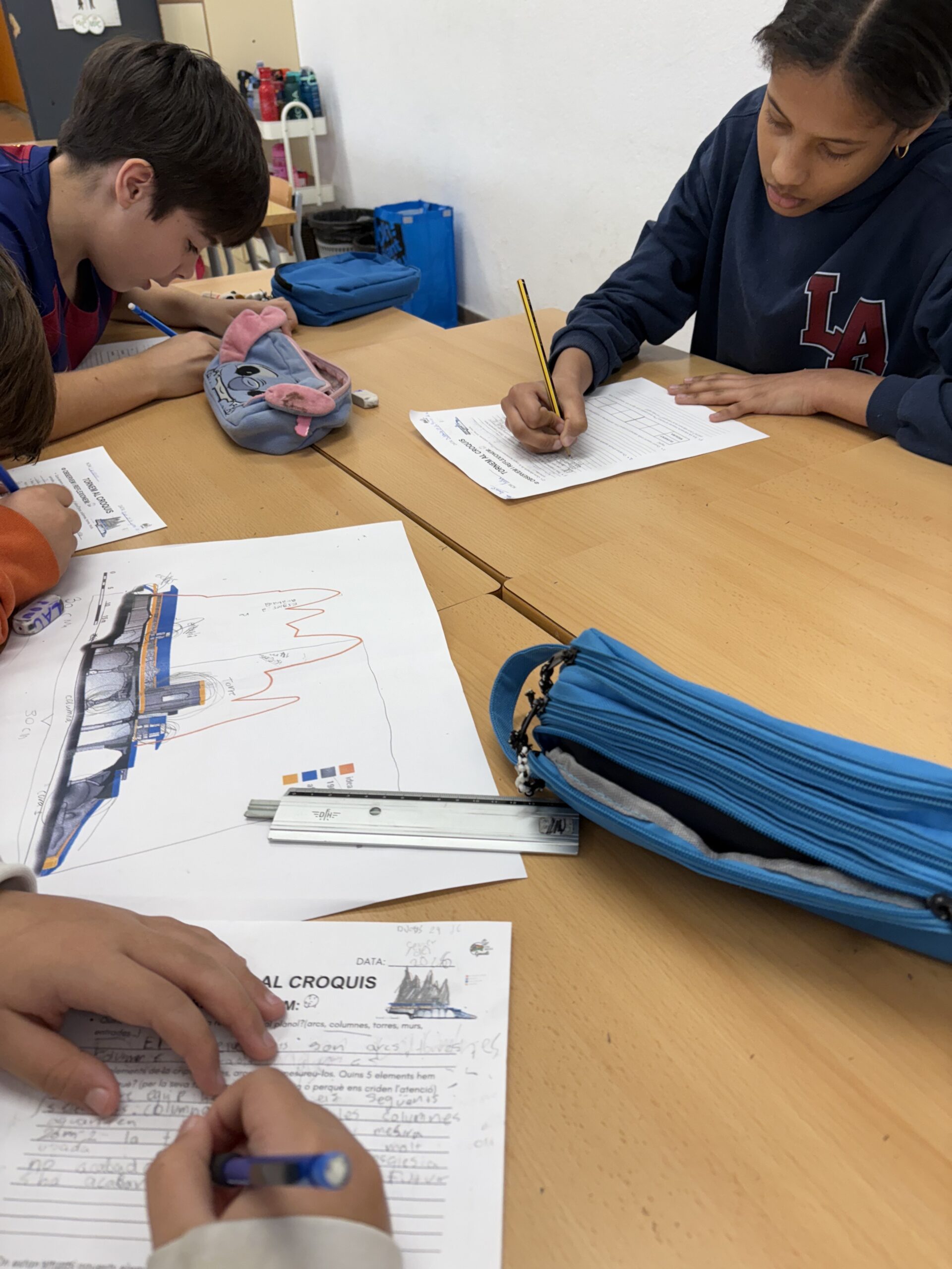 Hem observat elements com arcs, columnes o murs, i també hem treballat la mesura i l’escala, entenent com un plànol representa la realitat en petit format. A més, hem iniciat un laboratori d’arquitectes, on els alumnes formulen hipòtesis i experimenten per construir estructures inspirades en les formes que utilitzava Gaudí.