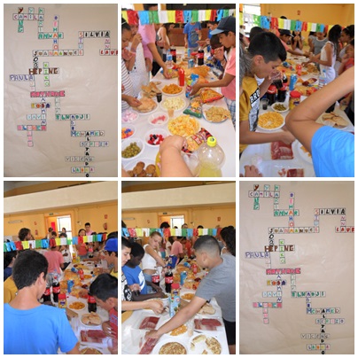 L’últim dia del curs els alumnes de sisè hem fet un pica pica per acomiadar-nos. Mentre estàvem fent la Festa de l’escuma els professors que no tenen tutoria ens han guarnit la sala d’actes. Son uns soletes!