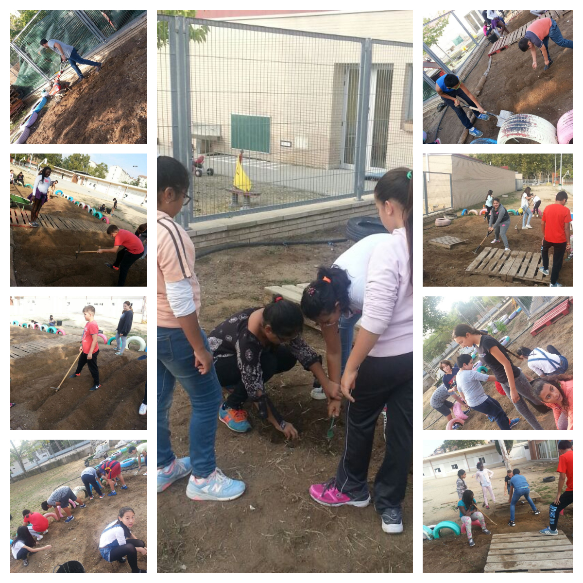 El nostre mestre Sergio va agafar una màquina que l’Ajuntament ens va deixar i va remoure l’adob. Hi havia moltes pedres i les vam haver de treure.