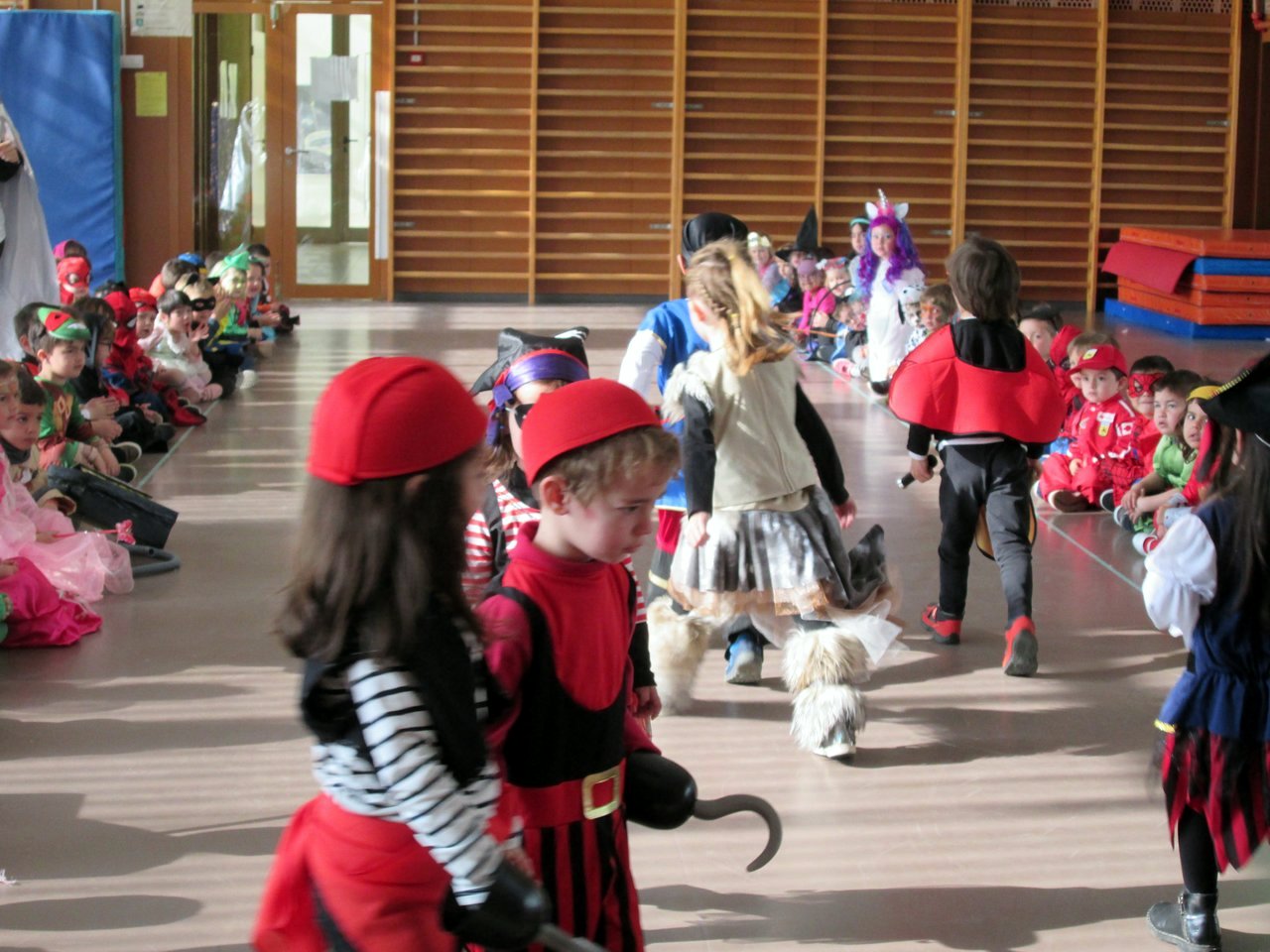 Ens ho hem passat molt! Hem fet una desfilada al gimnàs ensenyant les nostres disfresses: hi ha de tota mena! Pirates, prínceps i princeses, oficis, superherois, macs, animals… de tot i més!