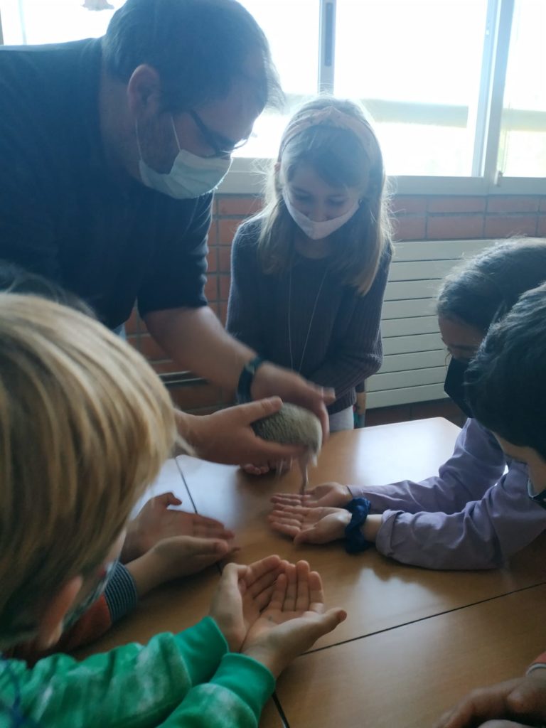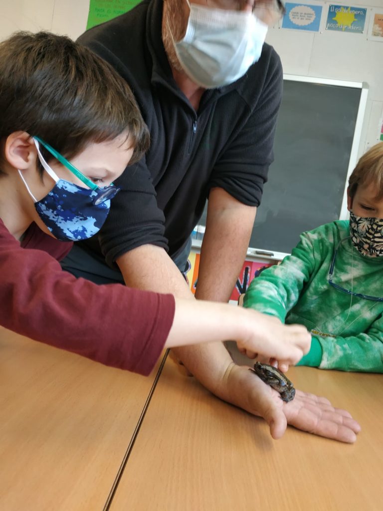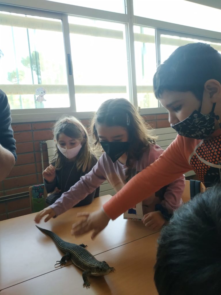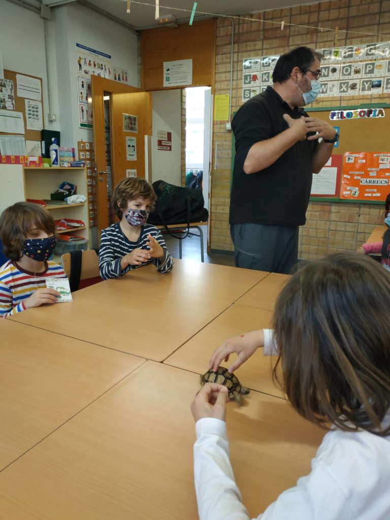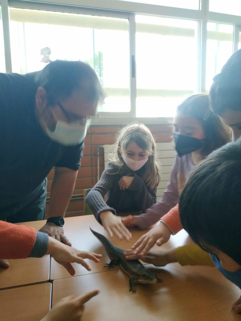 El Diego, un gran expert de l’Associació BioEduca, ens va portar a la classe alguns animals que van ser abandonats en el passat i que ara serveixen perquè els nens tinguin una oportunitat única de conèixer alguns animals vertebrats i les seves característiques.