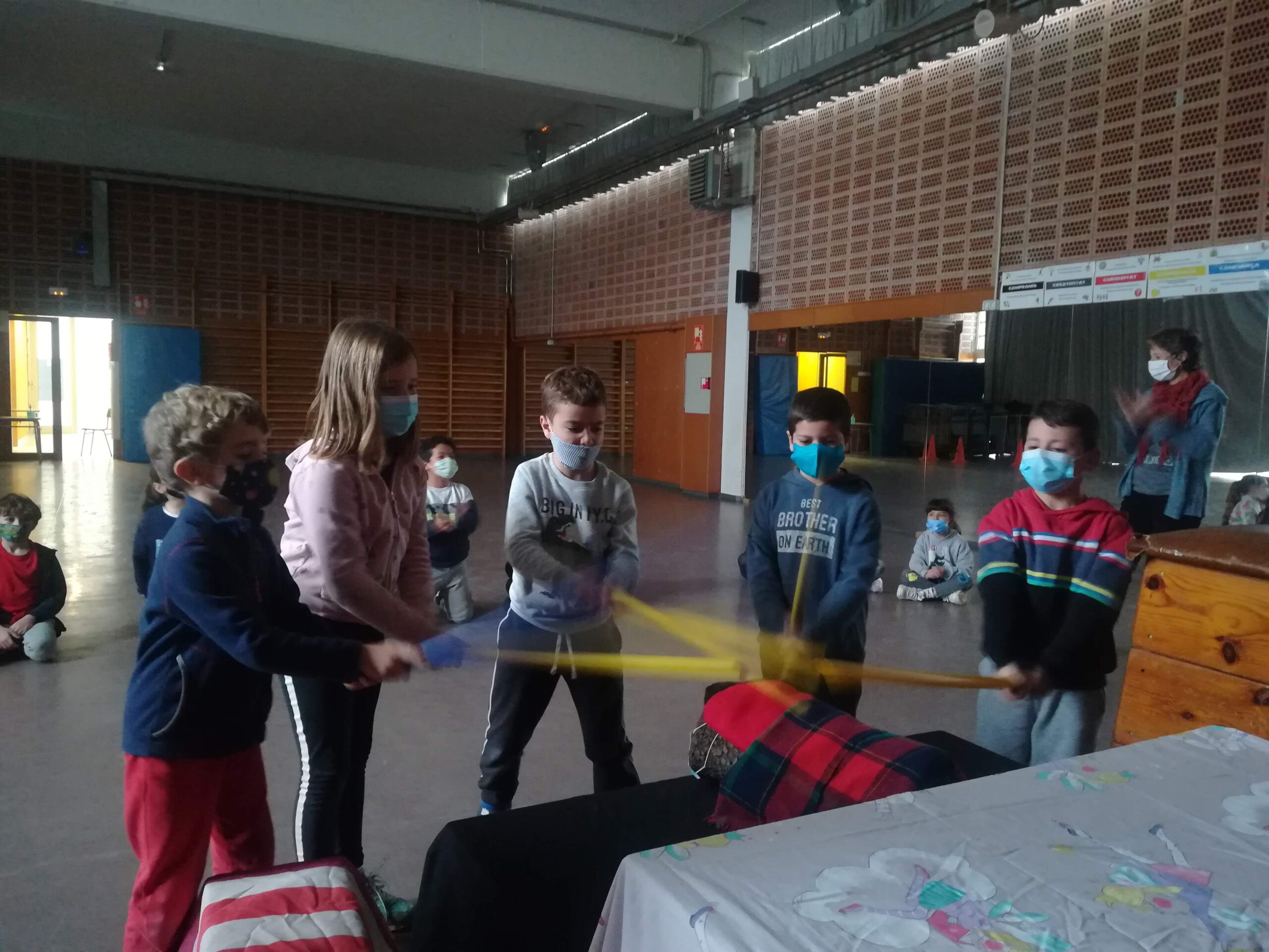 Els nens i nenes de la classe del teatre vam fer cagar el tió. Quin tip de cantar que ens vam fer!