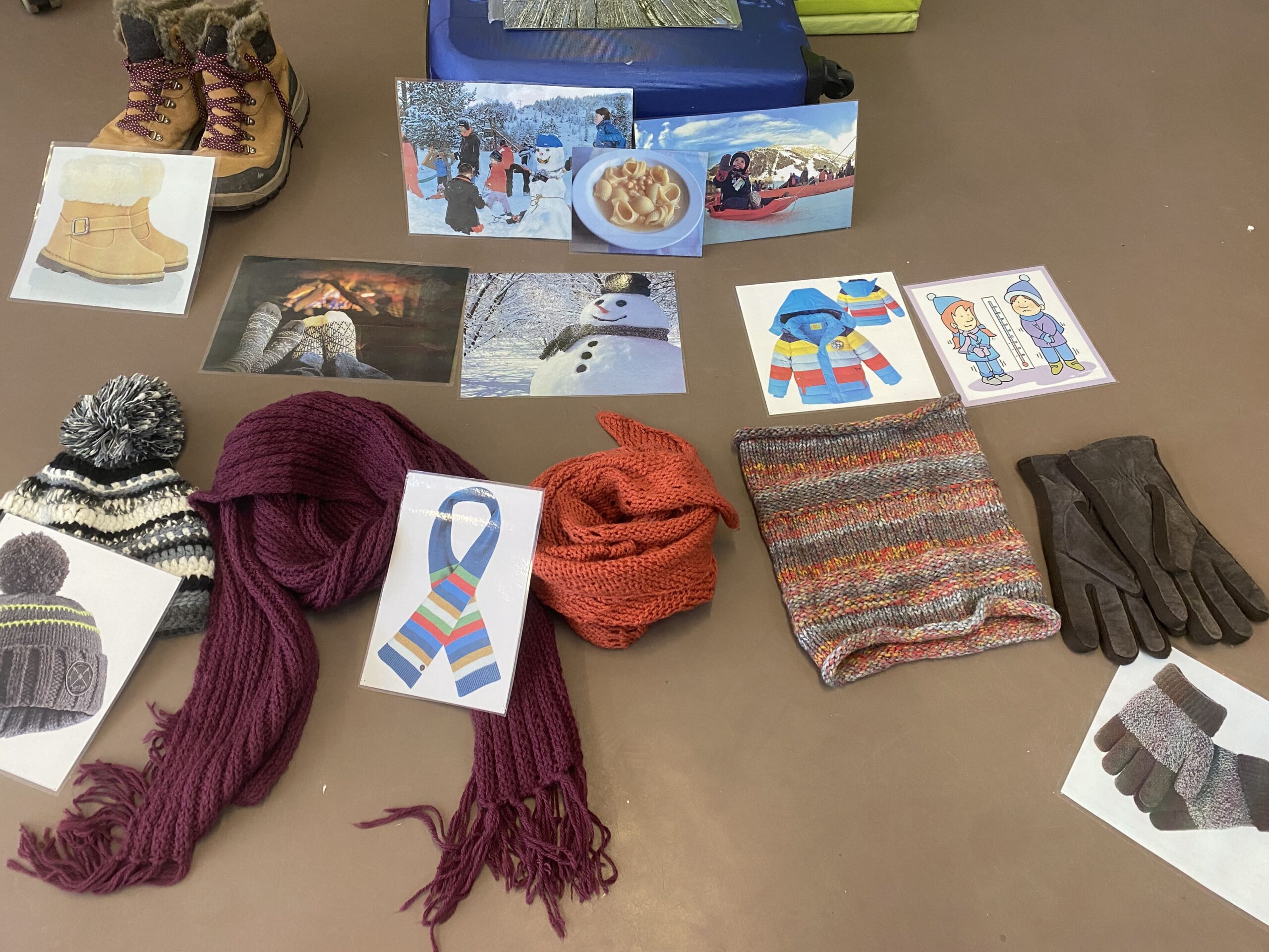 Les Formigues i els Cargols ens hem endinsat en l’hivern. Per començar, ens hem trobat una maleta a la classe, en obrir-la, hem vist que hi havia peces d’hivern i d’altres per l’estiu quan fa calor i les hem classificat. A l’aula ho hem plasmat al mural de l’hivern amb les fotografies.