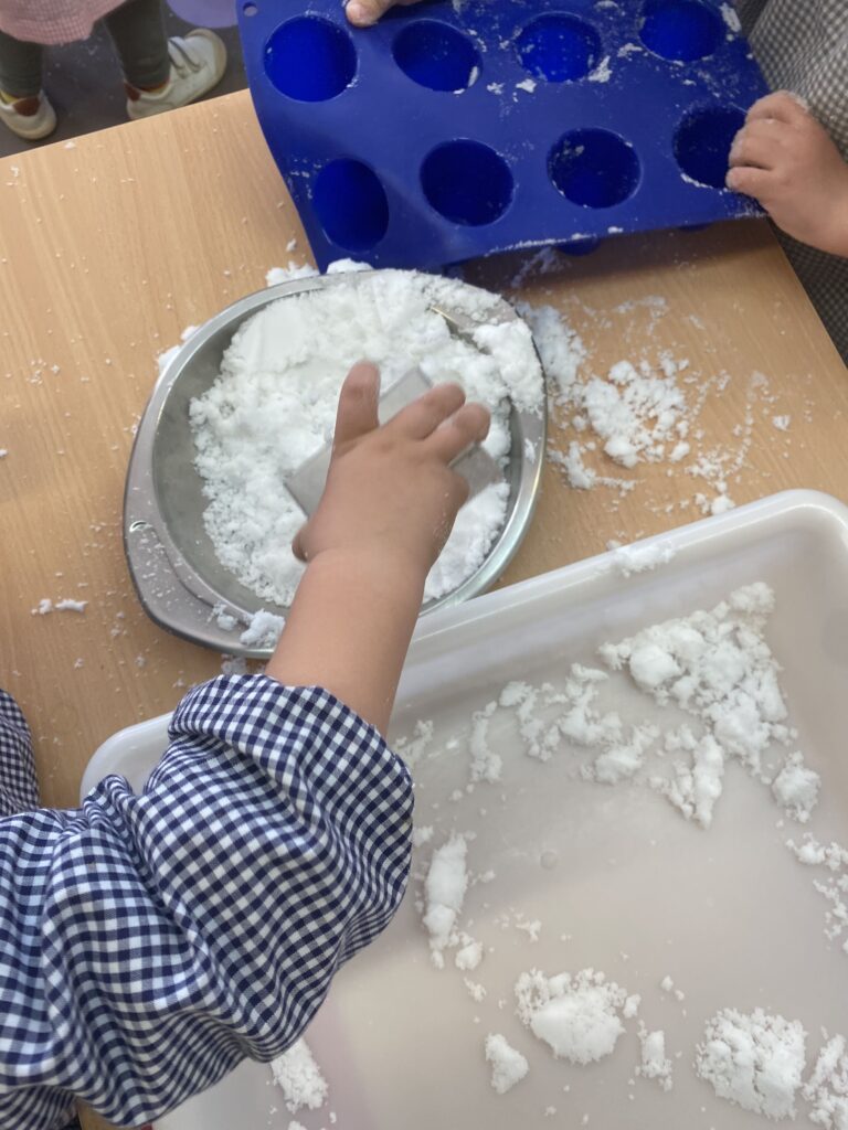 A l’hora d’experimentació hem pogut gaudir de les diferents textures que trobem quan fa fred: gel, neu i aigua (boles de gel).