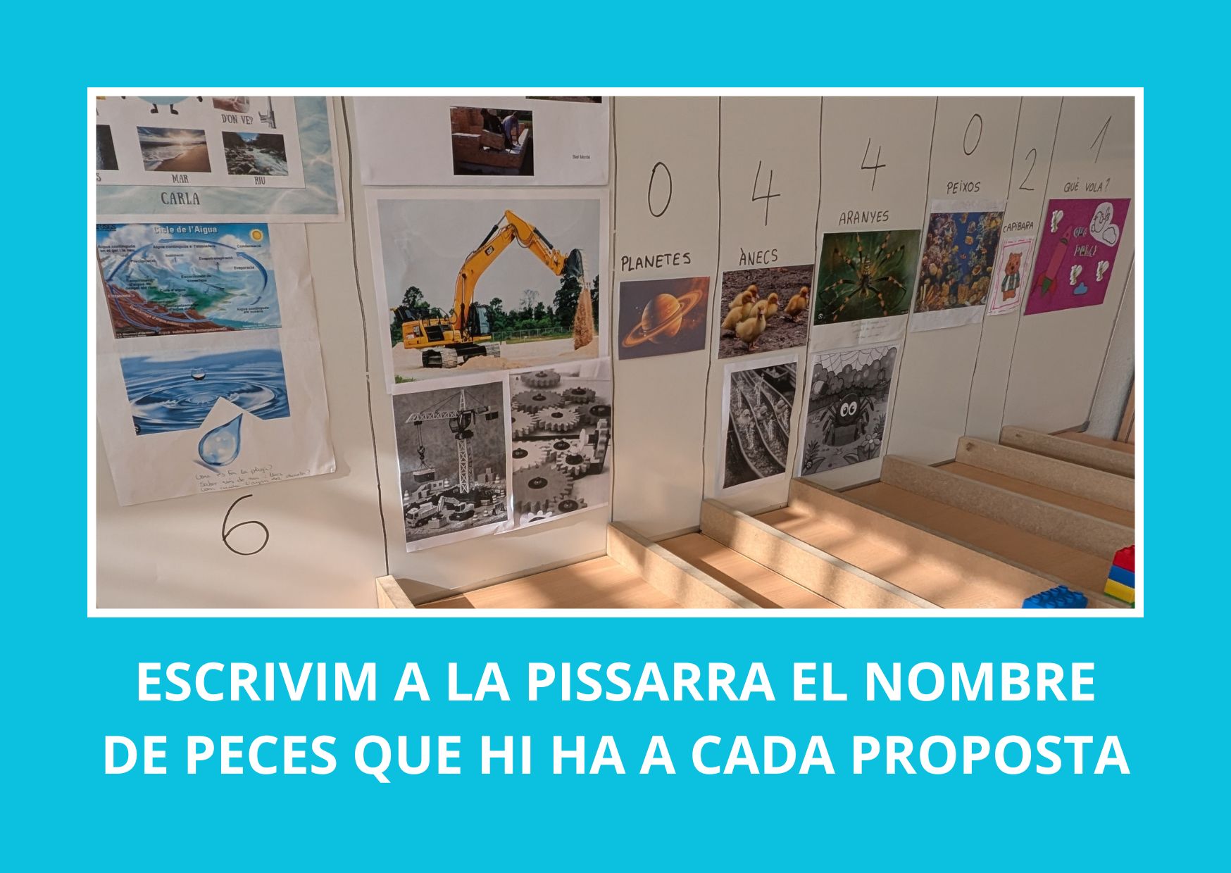 A LA CLASSE DE LES FORMIGUES INICIAREM UN NOU PROJECTE DEDICAT A L’AIGUA. A PARTIR DE PREGUNTES, EXPERIMENTS I ACTIVITATS DIVERSES, DESCOBRIREM PER A QUÈ SERVEIX, ON LA PODEM TROBAR I PER QUÈ ÉS TAN IMPORTANT PER A LES PERSONES, ELS ANIMALS I LES PLANTES.