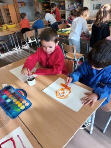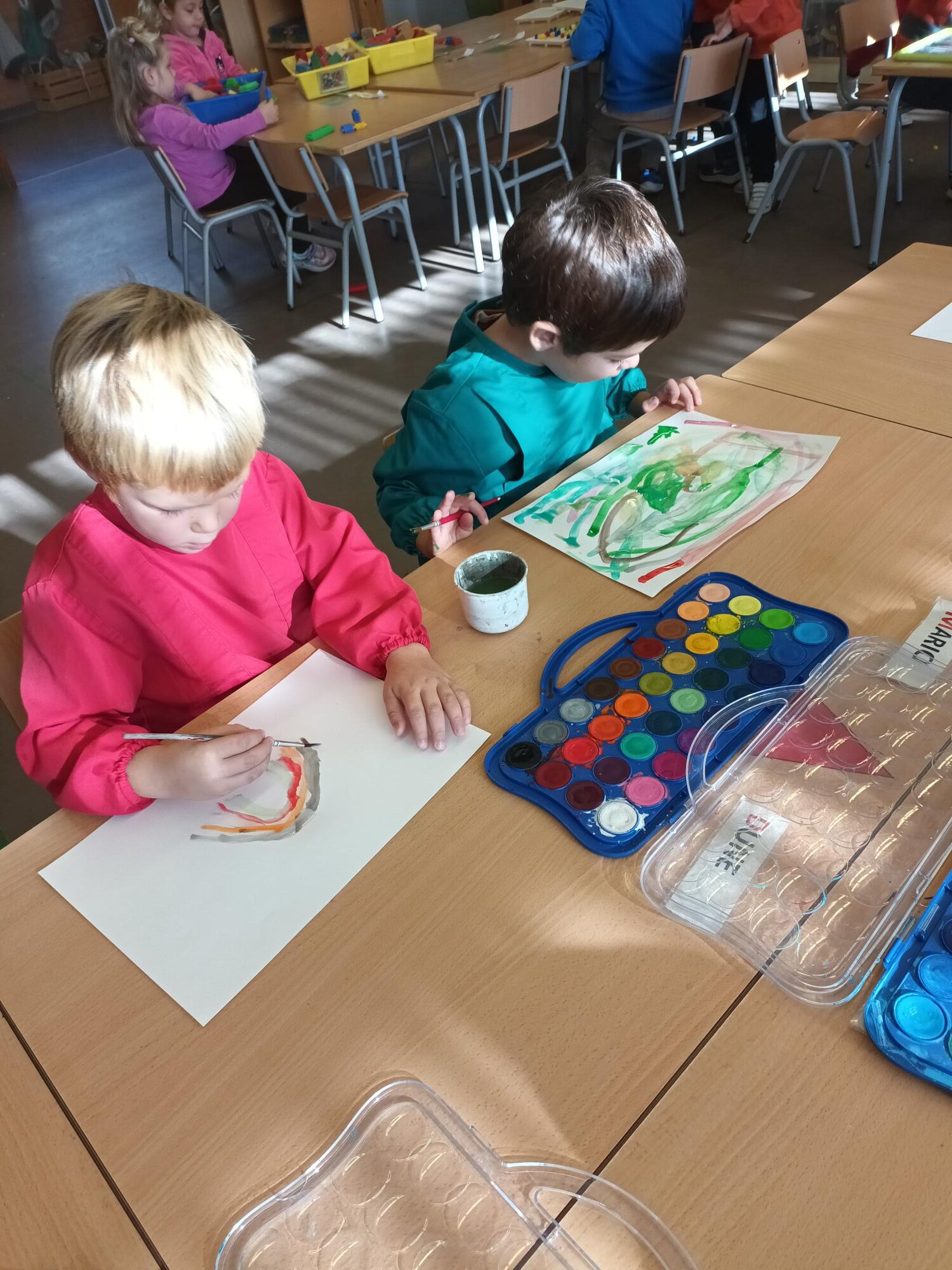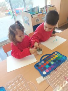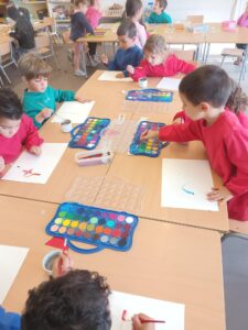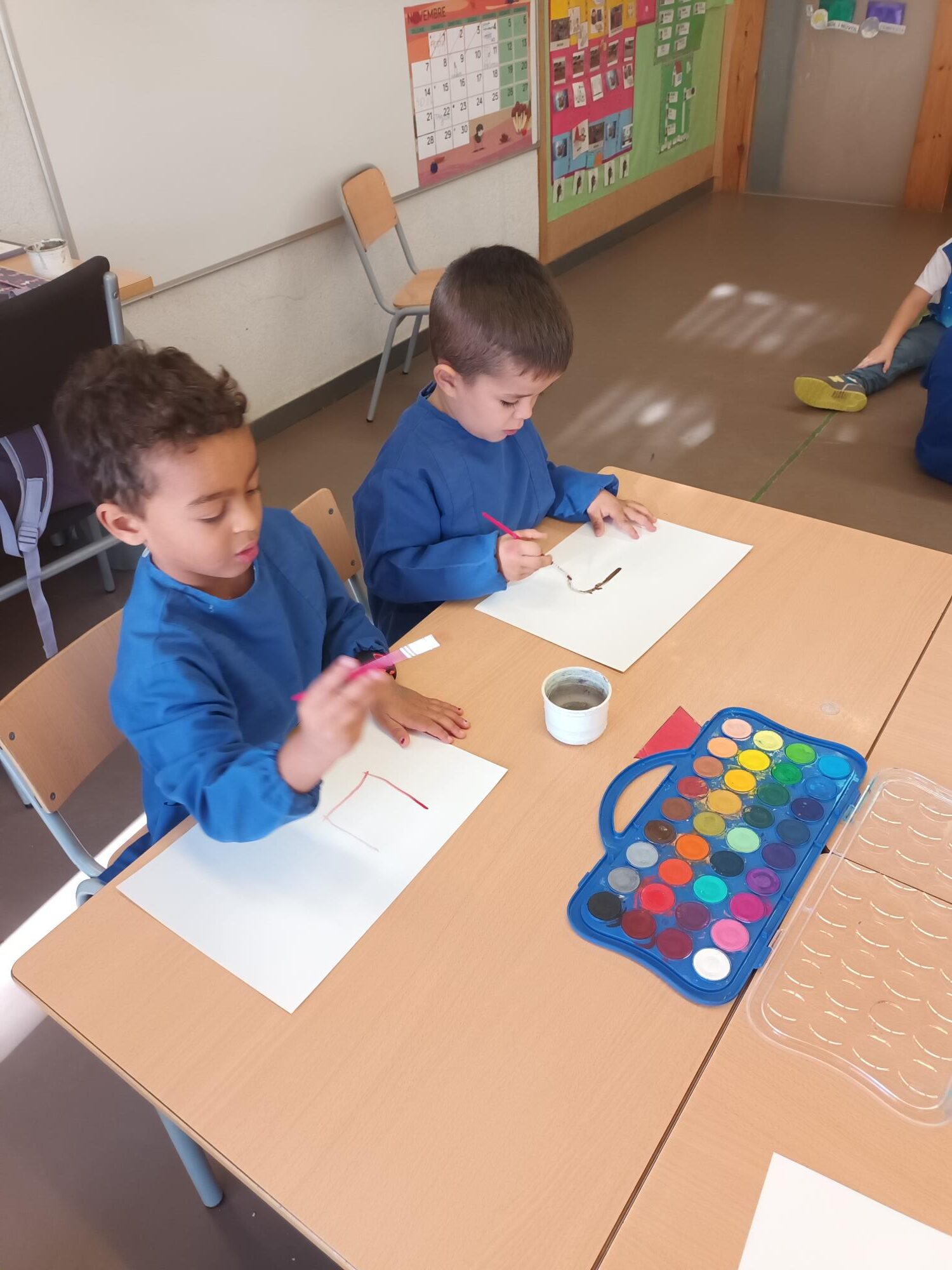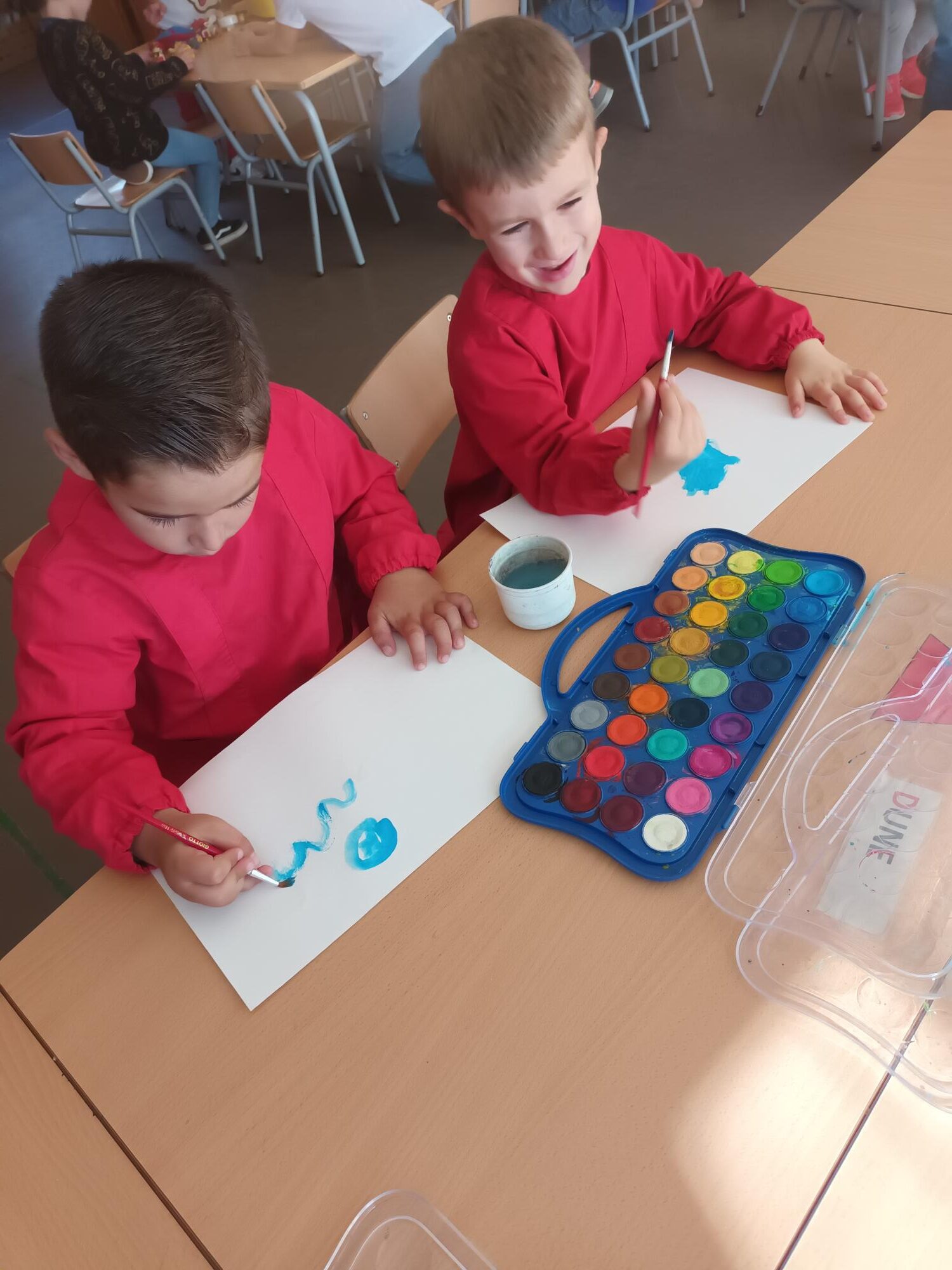 A I4 PER PRIMERA VEGADA HEM PINTAT AMB AQUAREL·LES. SEMBLA FÀCIL, PERÒ HEM HAGUT DE CONCENTRAR-NOS PER RECORDAR QUE HEM DE MULLAR EL PINZELL ABANS DE FER-HO SERVIR, QUAN VOLEM CANVIAR DE COLOR… PER AIXÍ NO BARREJAR ELS COLORS. HEM POGUT DIBUIXAR EL QUE HEM VOLGUT I ENS HA AGRADAT MOLT PINTAR “COM ELS GRANS” 🙂