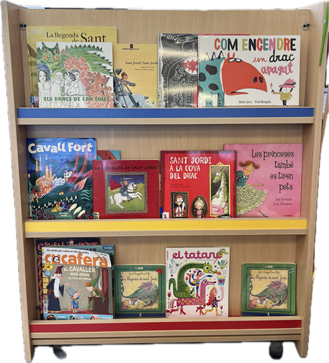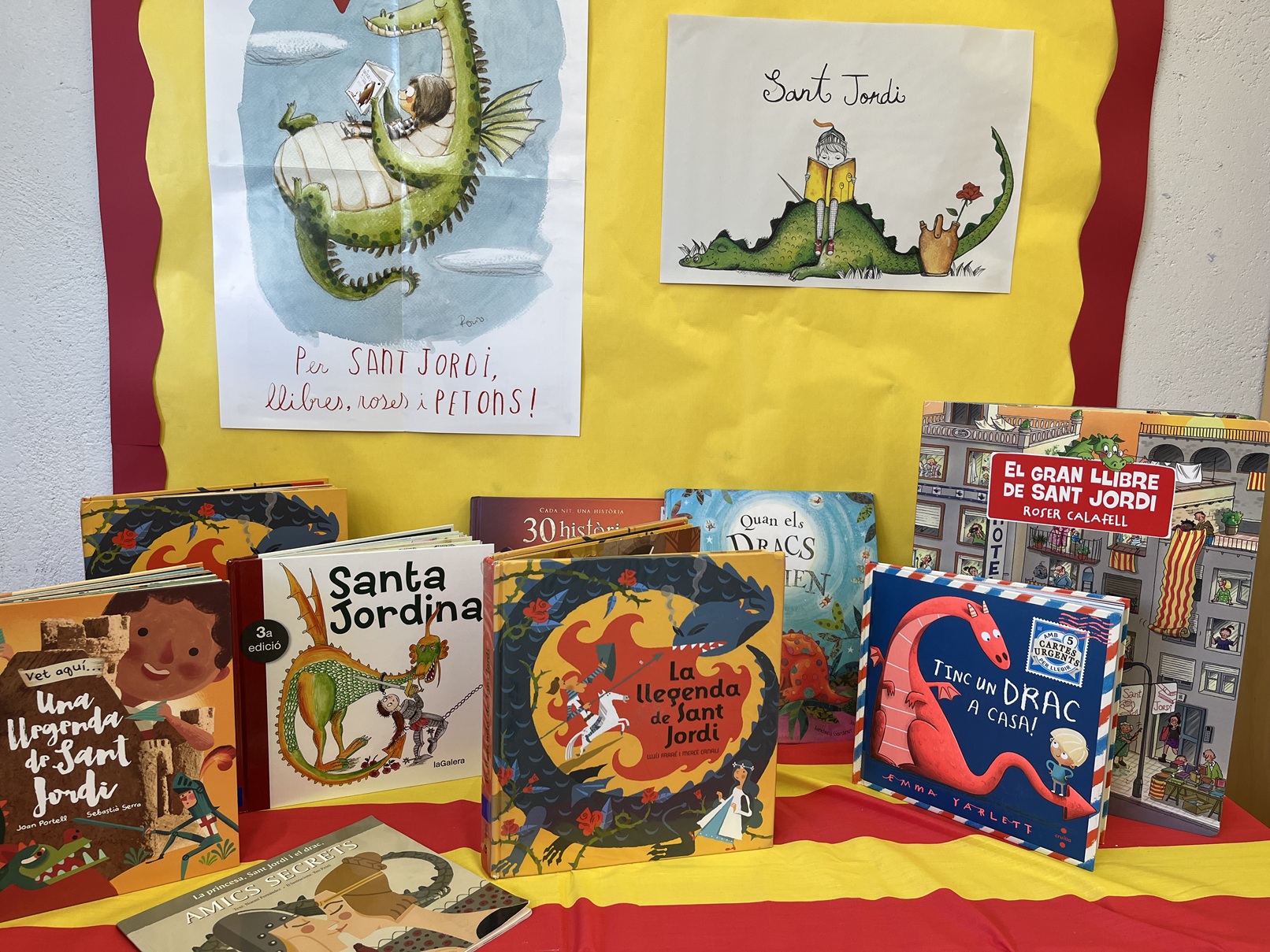 La biblioteca viu un dels moments més especials de l’any… per Sant Jordi s’omple de dracs, princeses i cavallers. Els infants de l’escola participen en el Certamen Literari amb les seves produccions.