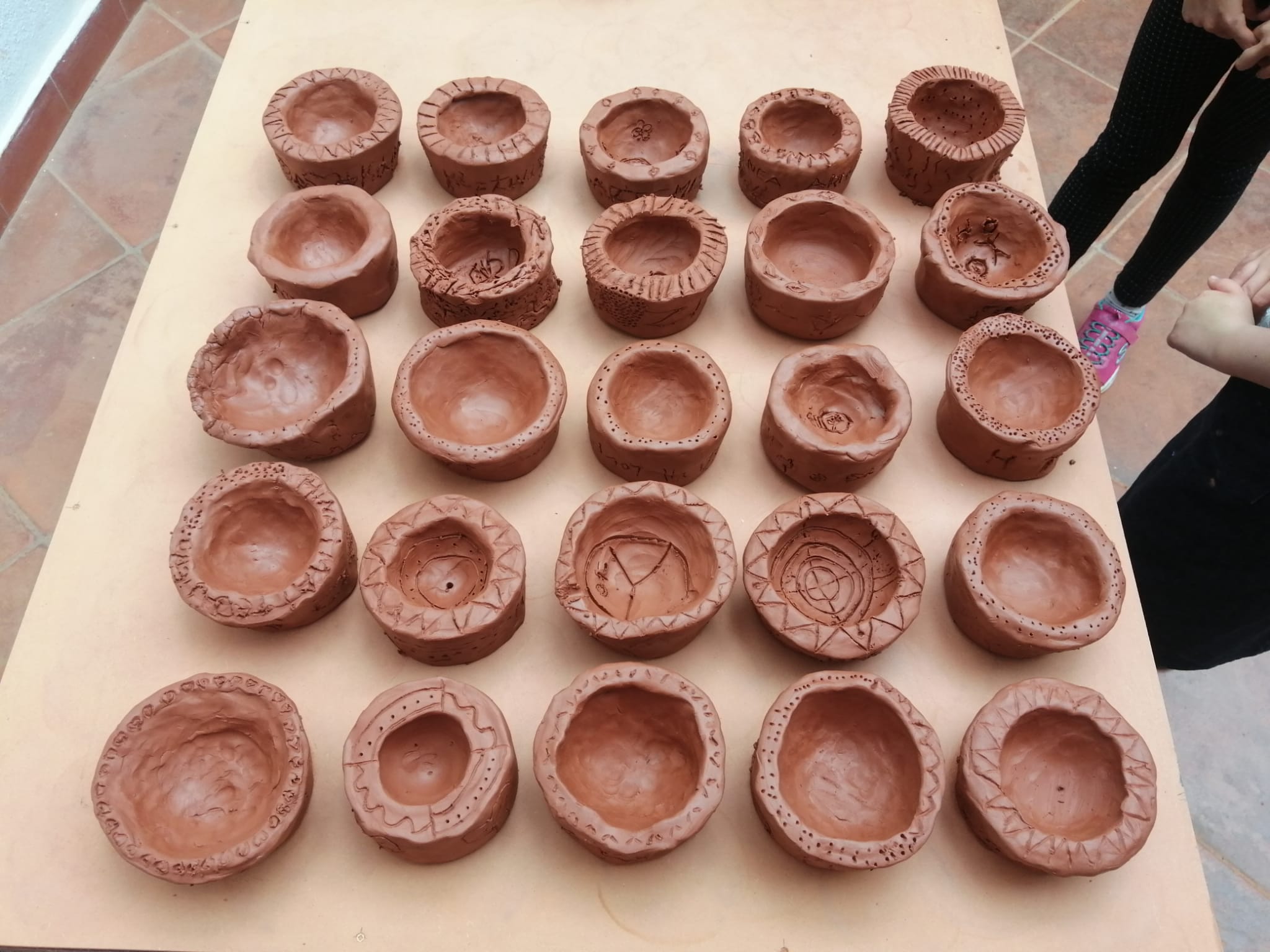 Les peces que vam fer, es van quedar al taller ara s’han de coure. Llavors les decorarem.