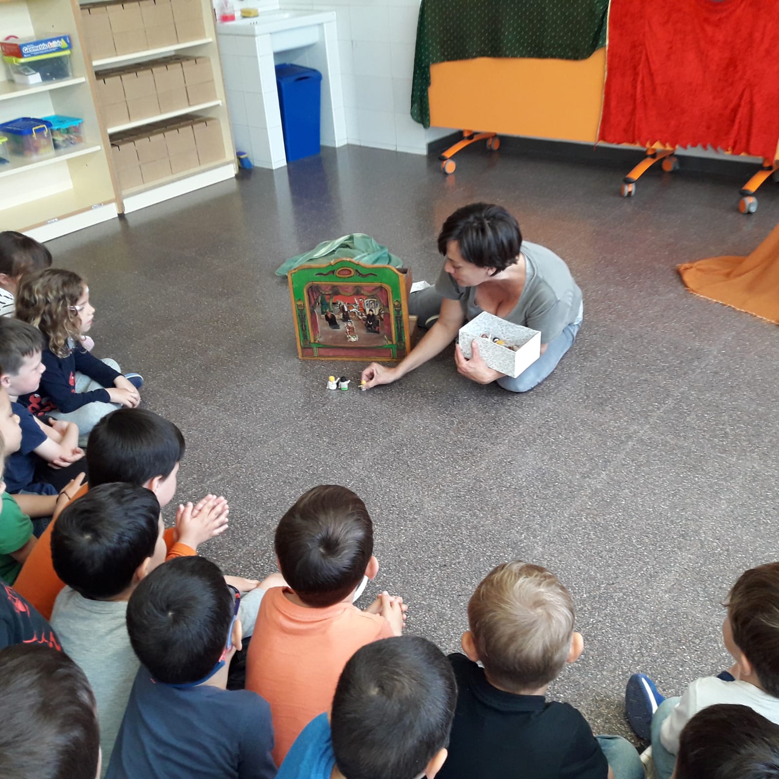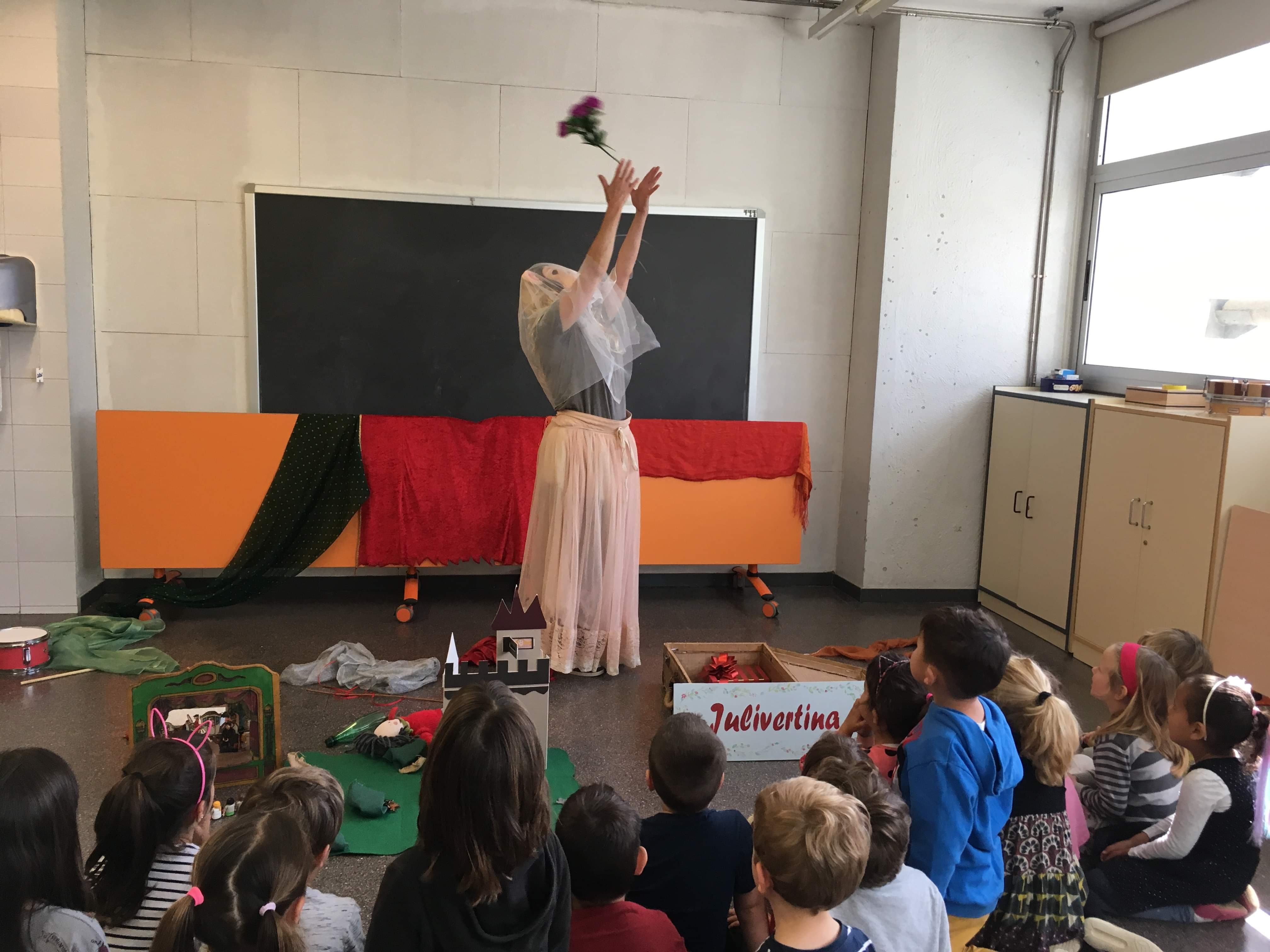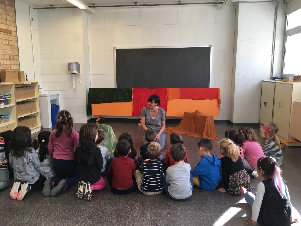 El passat dimarts, l’espai de música de l’escola es va convertir màgicament en una sala on l’actriu Rosa Gàmiz va fer teatre pels nens i les nenes de P4.