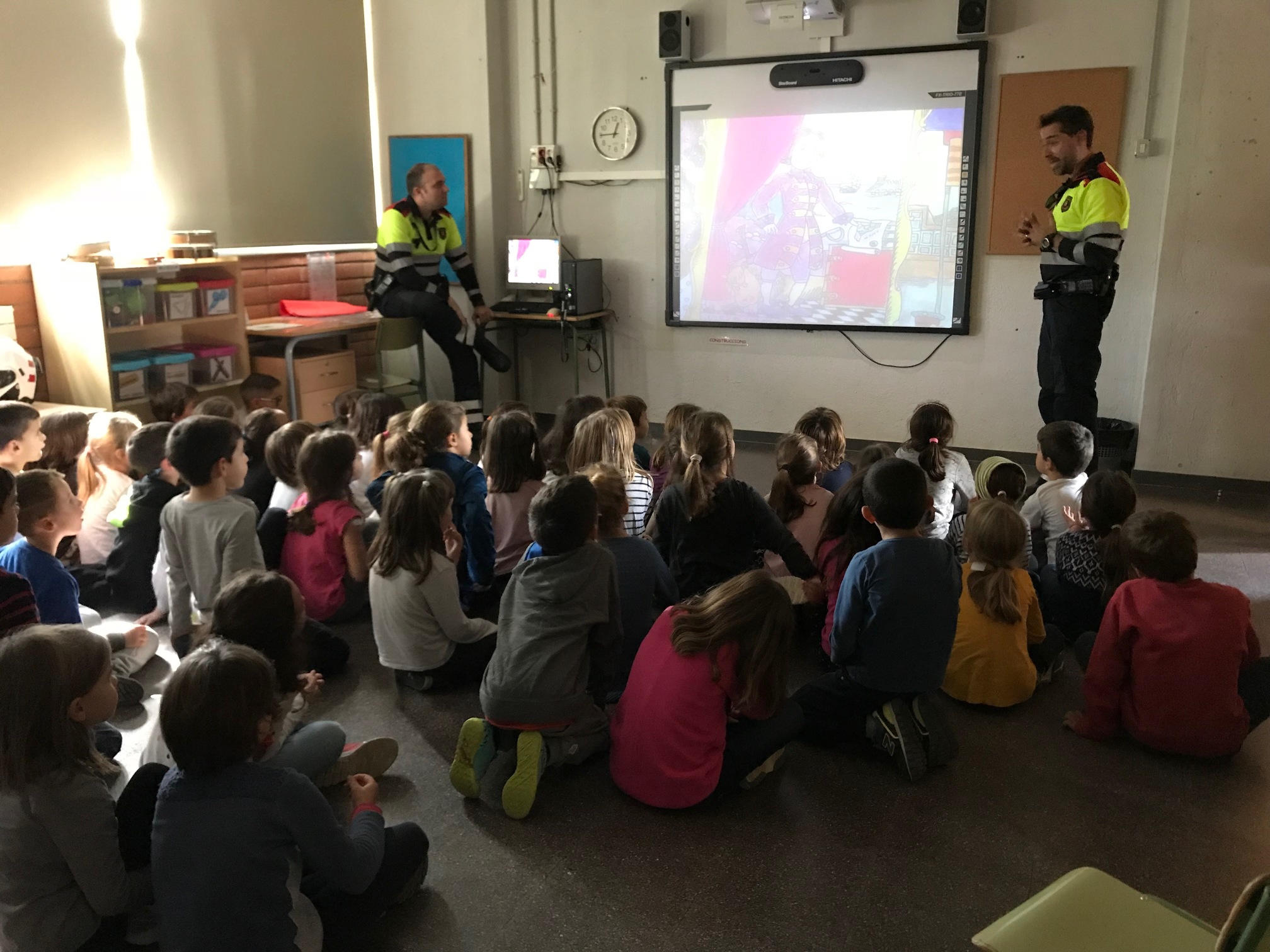 El Jordi i el Pablo ens van explicar totes les coses que fa la policia i ens van ensenyar dos dels automòbils que utilitzen. Ens van deixar pujar a la seva moto i al seu cotxe de policia.