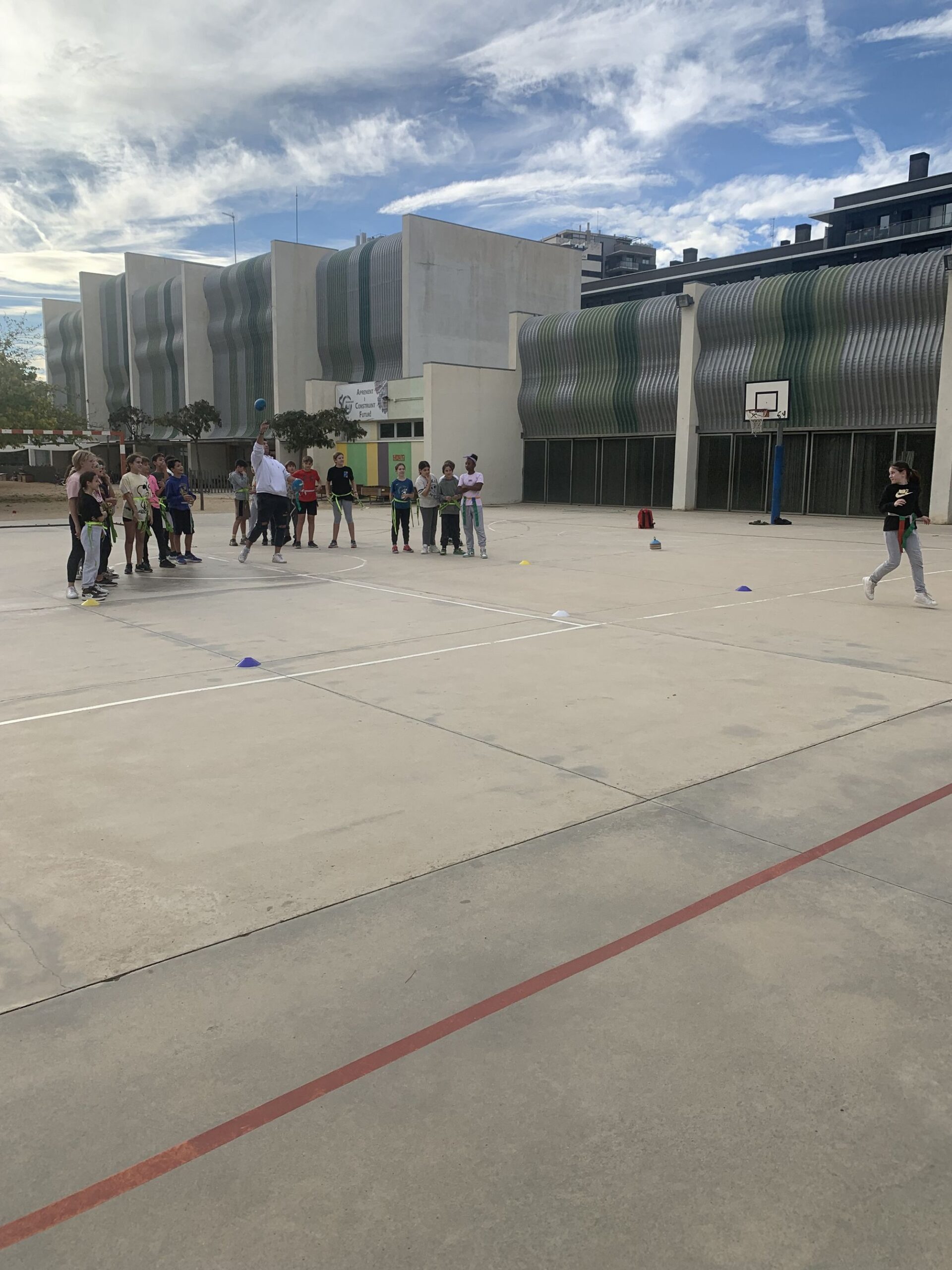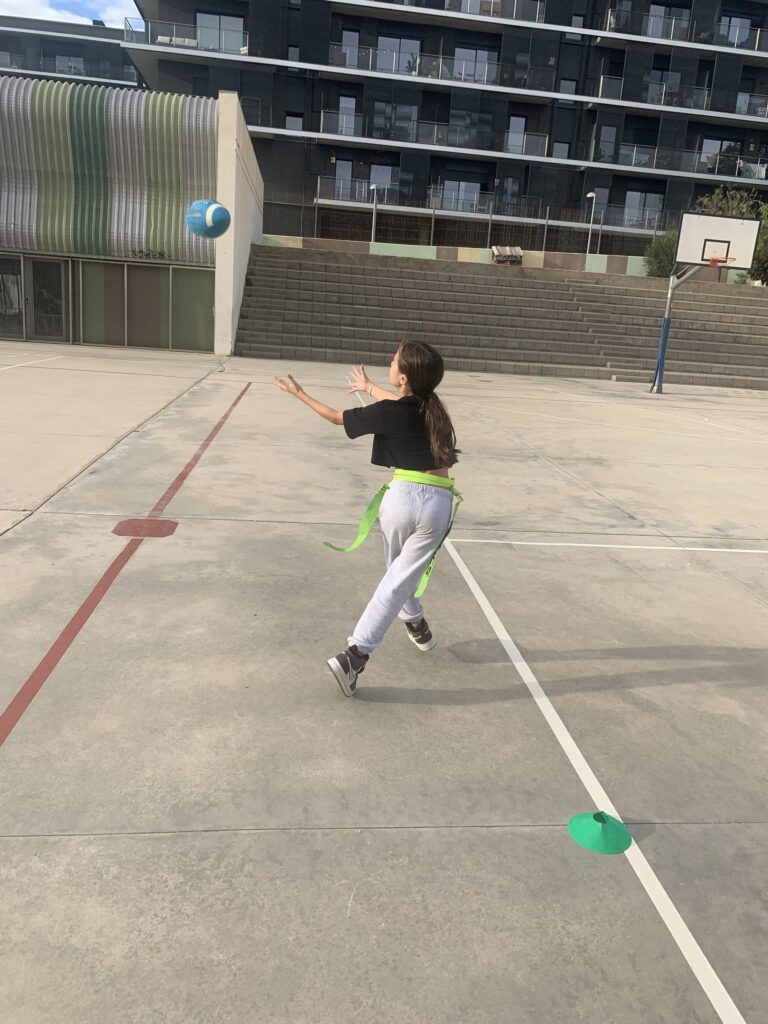 Les classes del Volcans (4t), Geologia (5èA), Rodatge (5èB) i Medi Ambient (6è) vam aprendre a jugar a futbol flag amb l’Ezequiel, jugador dels Badalona Dracs i professional d’aquest esport!!