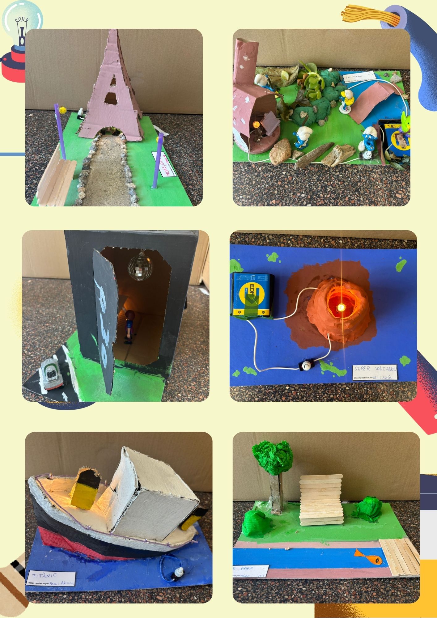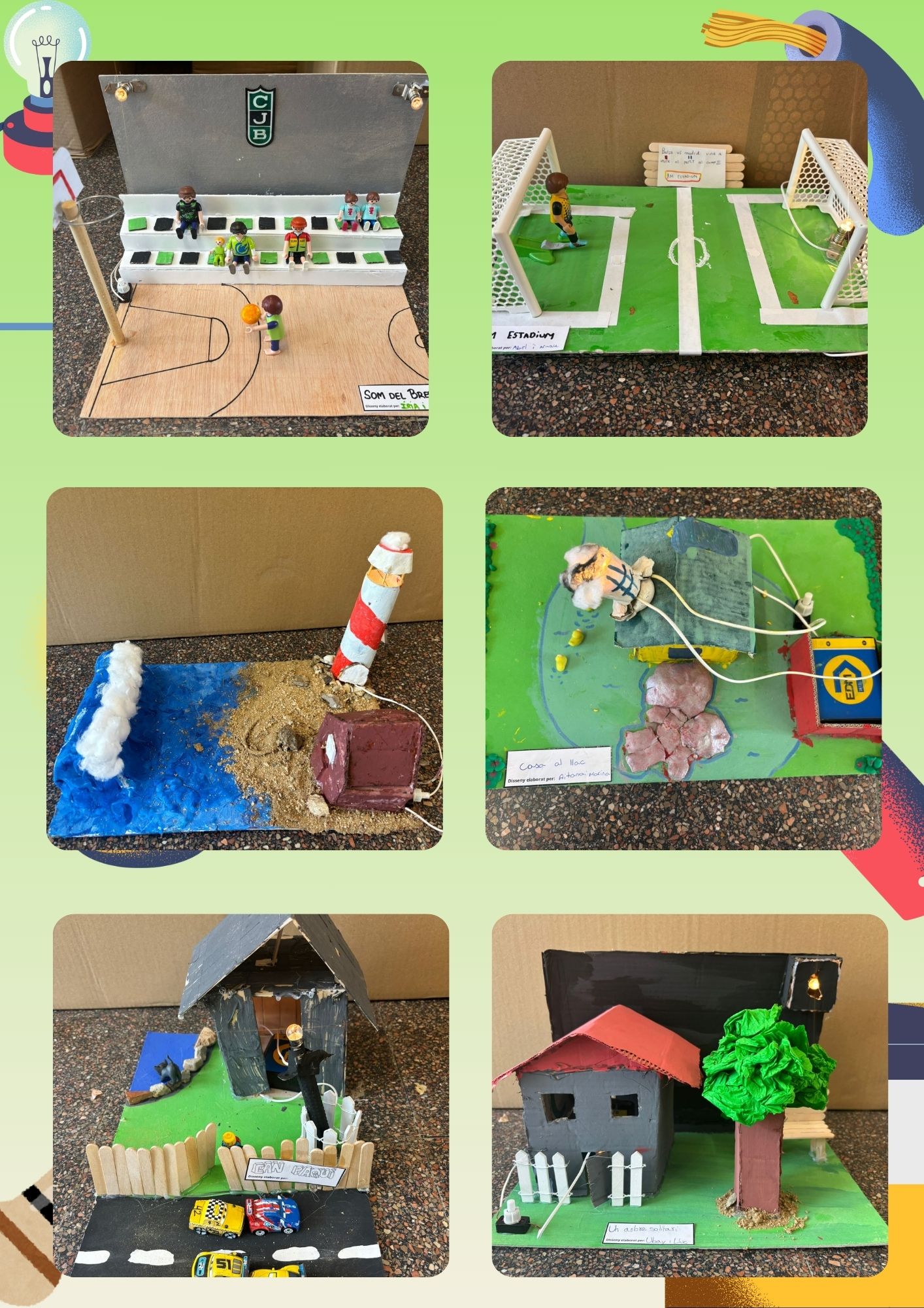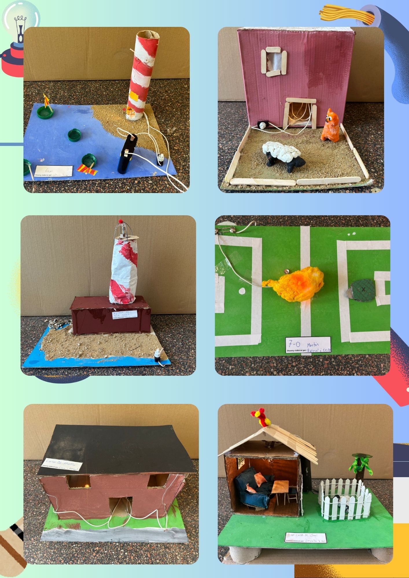 Com a projecte final, hem creat una maqueta amb un circuit elèctric, treballant en parelles. Ha estat una activitat molt enriquidora, on hem pogut posar en pràctica els coneixements sobre electricitat, tot deixant volar la imaginació i aplicant la nostra creativitat. Cadascuna de les maquetes és única, i l’hem feta amb molt d’esforç i entusiasme.