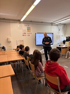 Aquest dimecres, dia 19, va venir la Guàrdia Urbana a la nostra escola i vam fer un taller que ens va agradar molt. Ens van explicar coses molt importants sobre com anar pel carrer amb seguretat. Vam parlar de per què hem d’estar atents a les explicacions i als senyals de trànsit, i també de quins perills podem trobar si no anem amb compte.