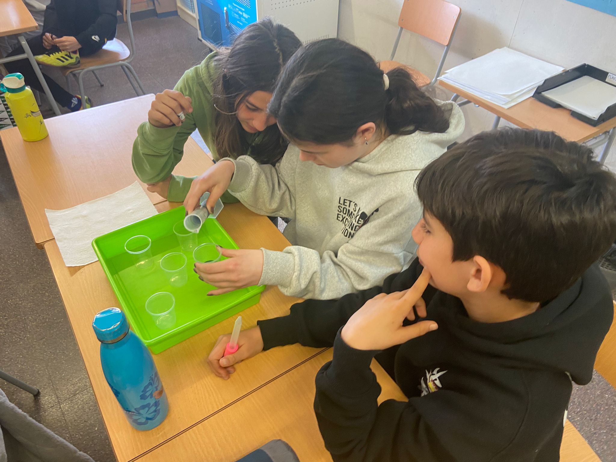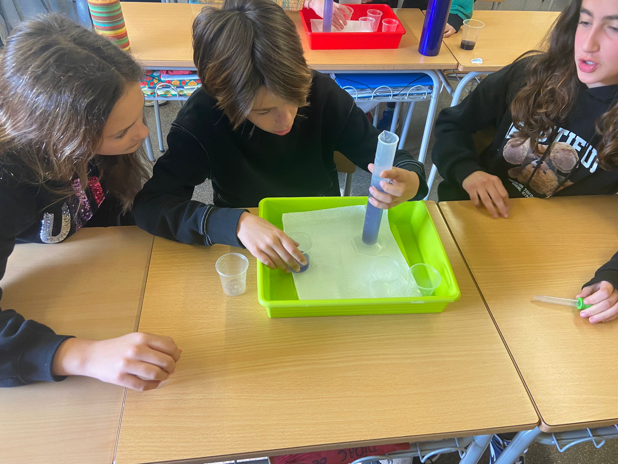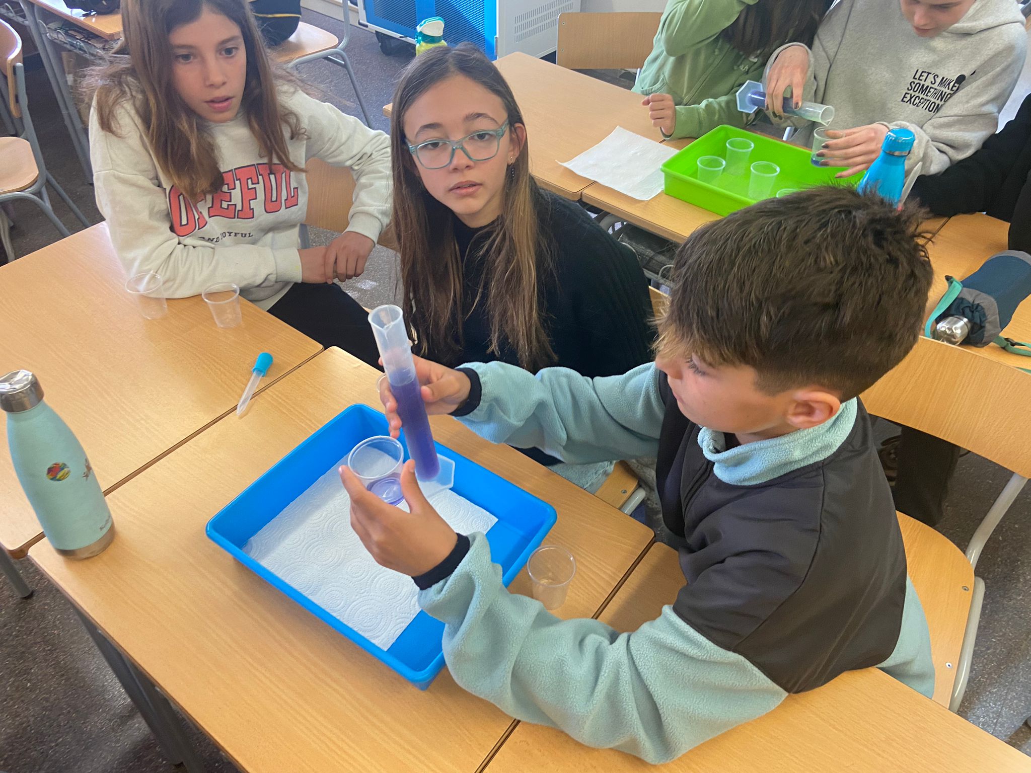 Ha estat una estona molt profitosa on la ciència ha entrat en acció i on, a més a més, ens hem familiaritzat amb les unitats de mesura i hem après a fer servir els estris de laboratori.