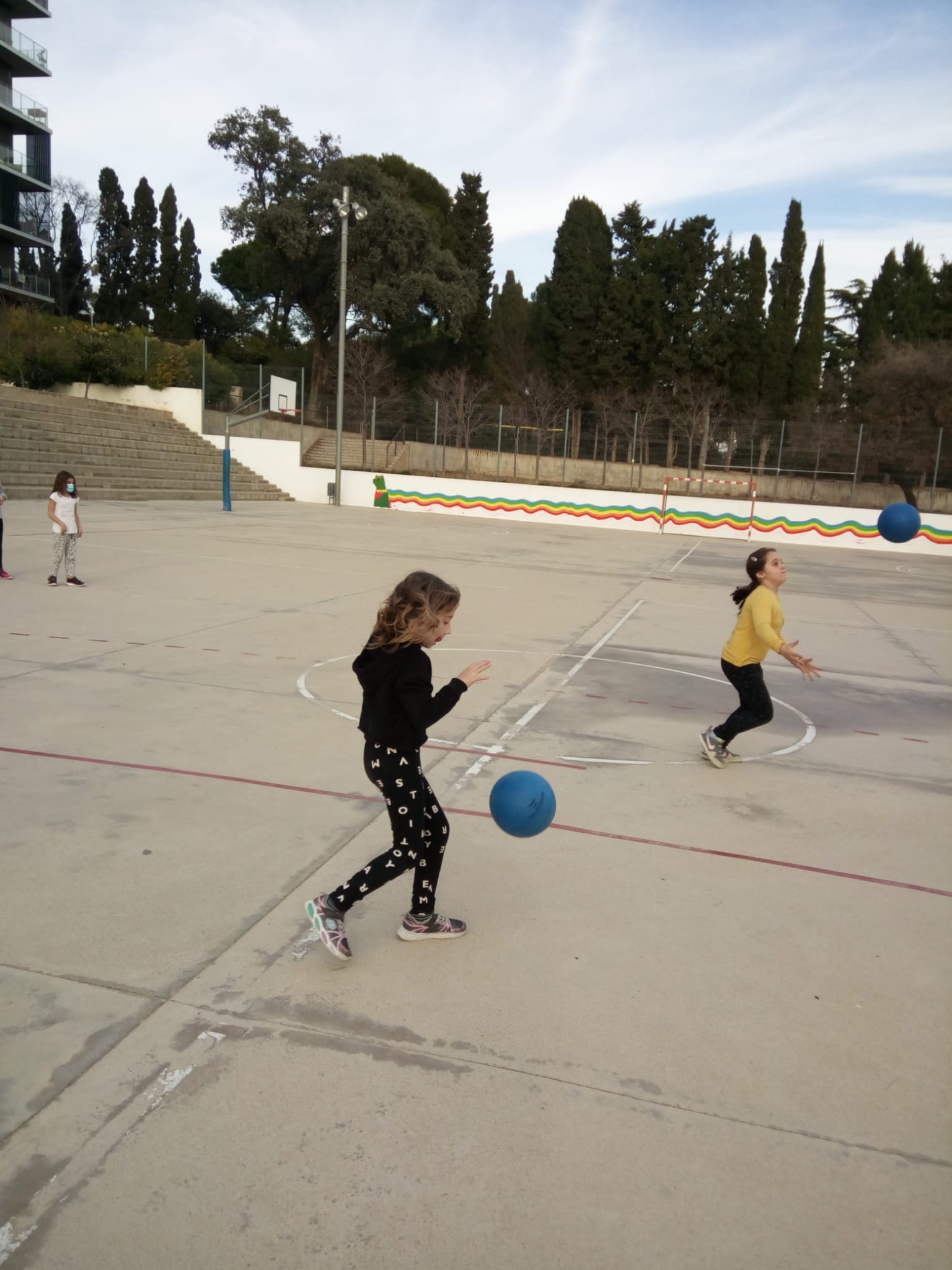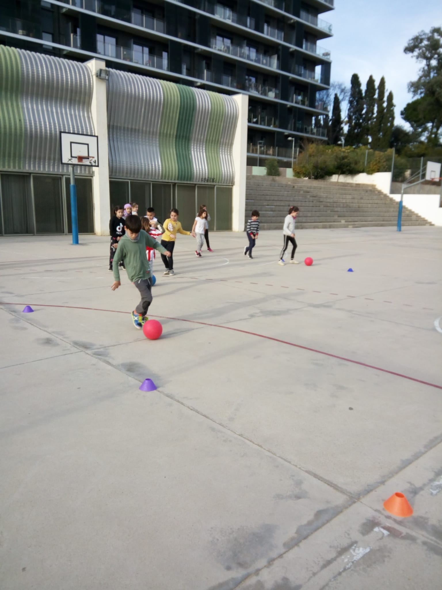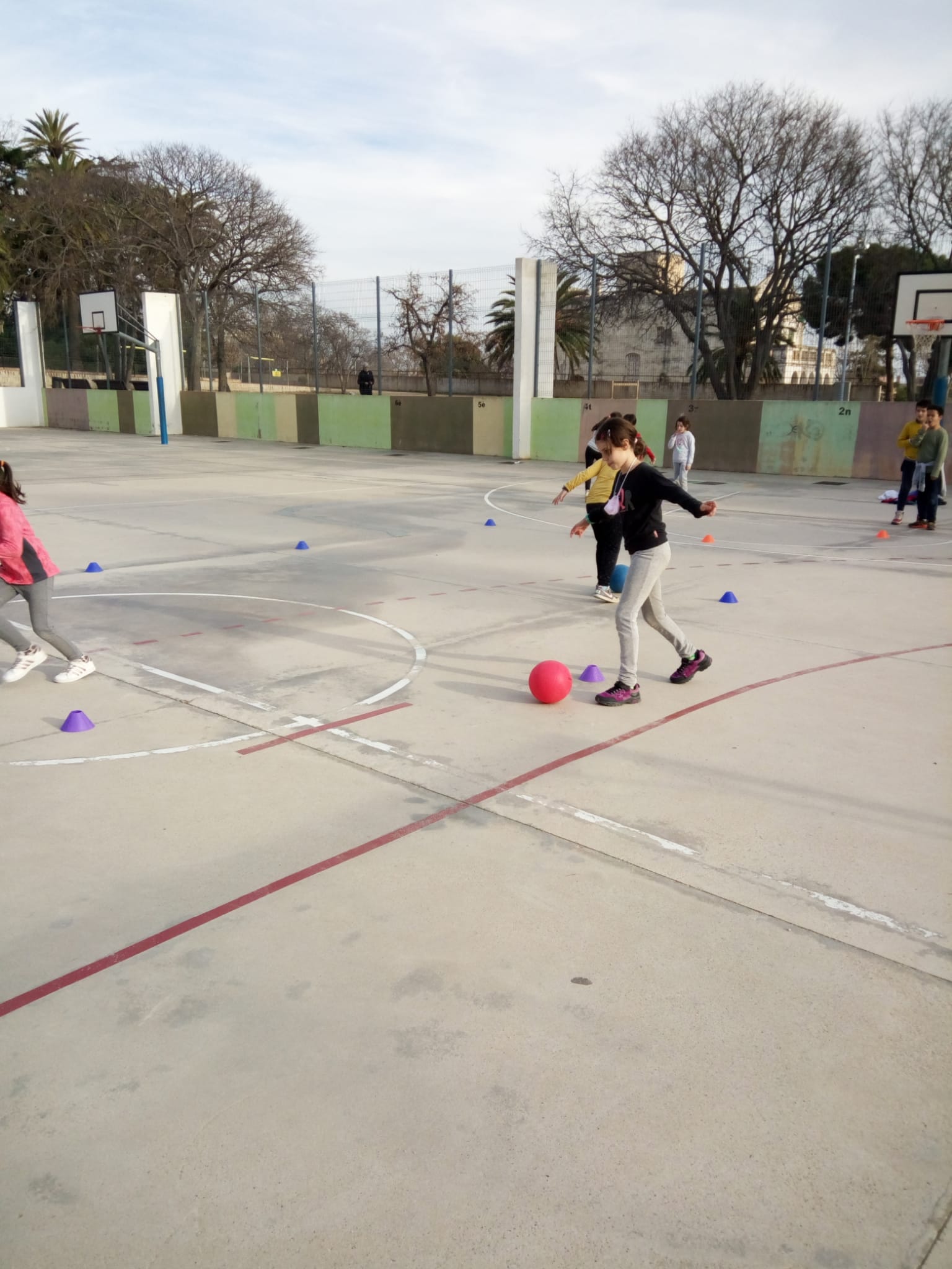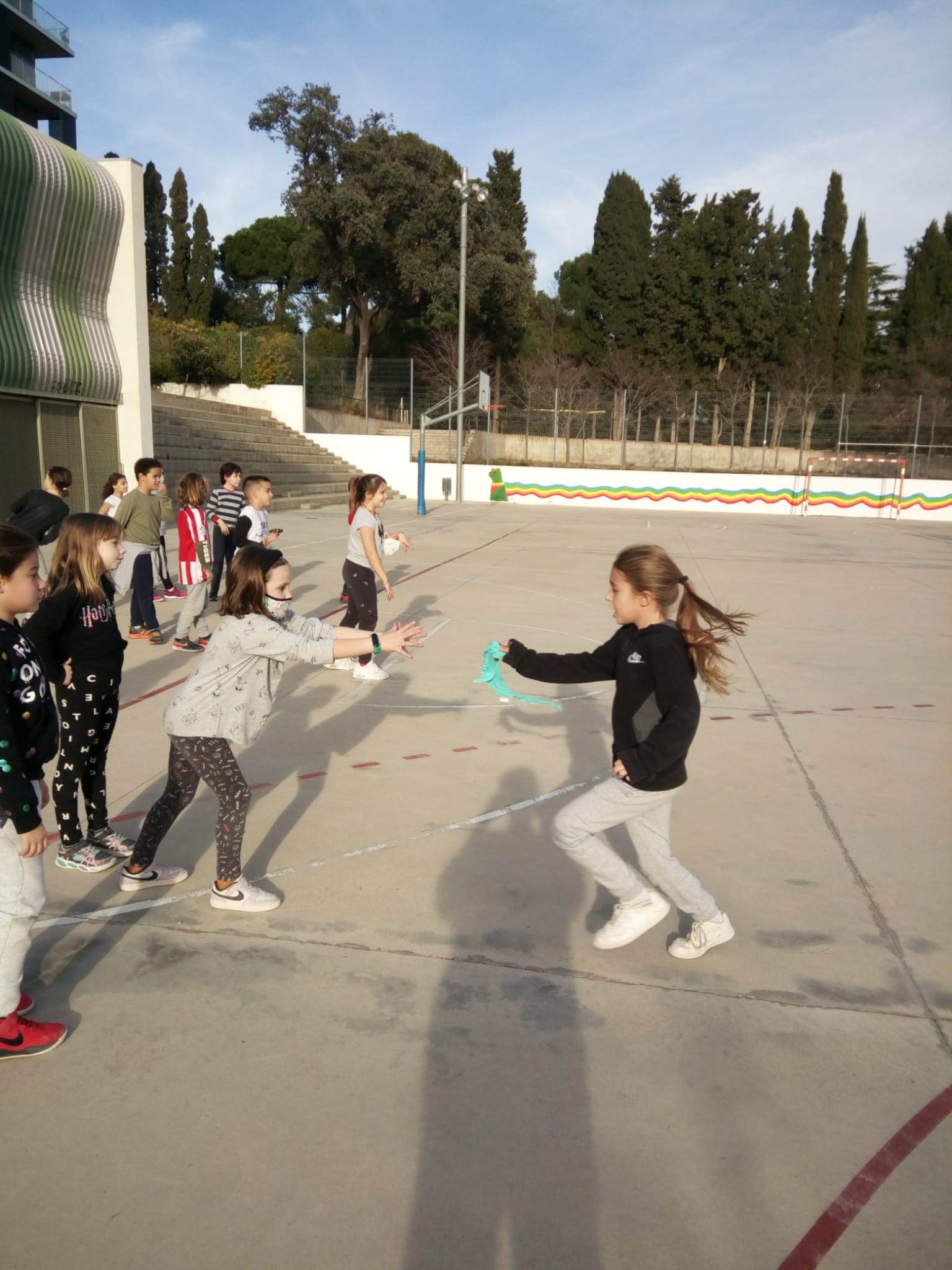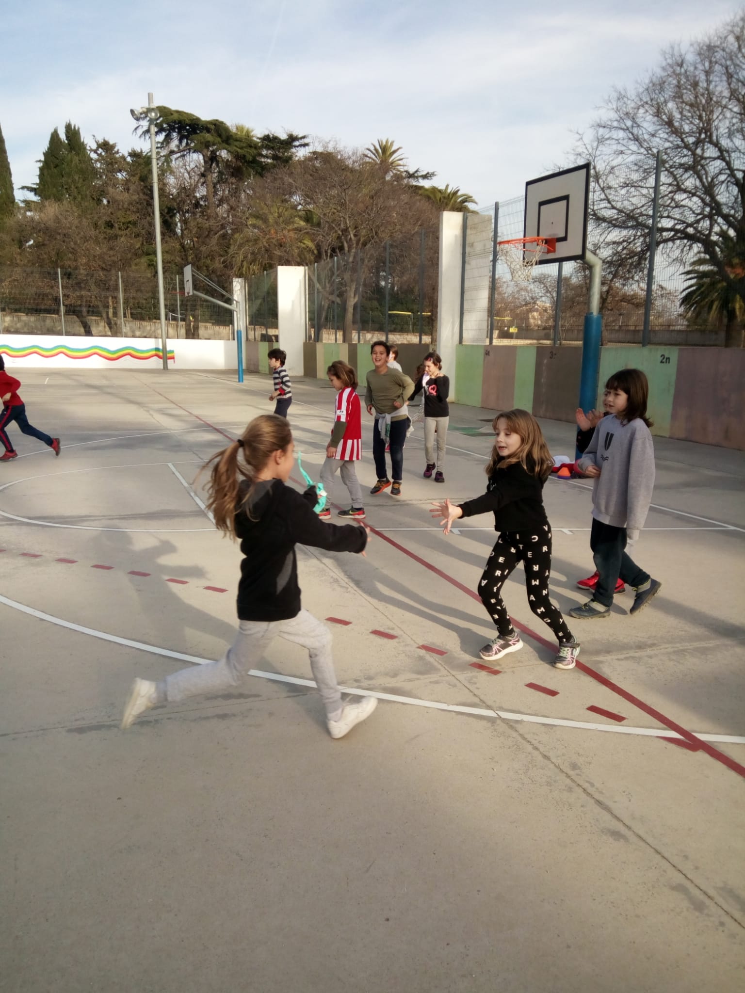 Aquests dies, a educació física estem fent circuits esportius, com per exemple: futbol, bàsquet, zig-zag, el joc del mocador, el mocador, relleus amb pilota i amb mocador…